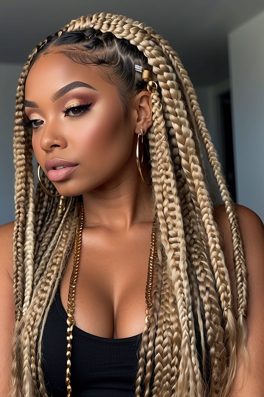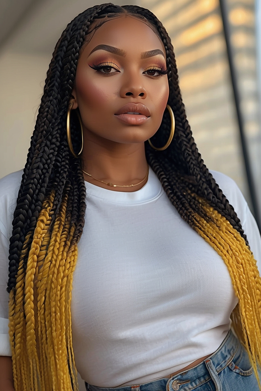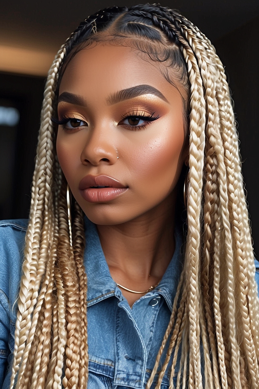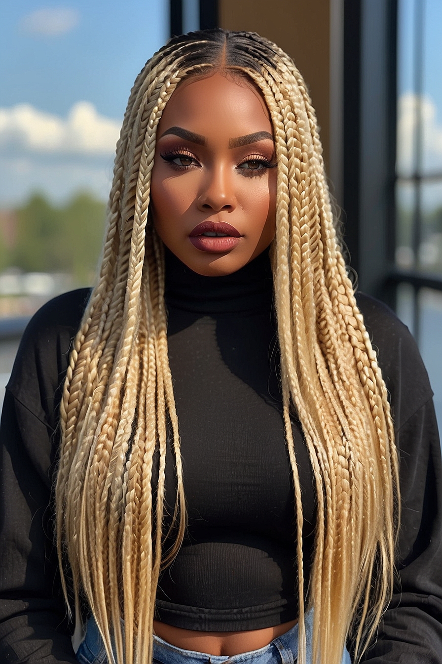 Discover breathtaking knotless box braids with blonde ends on our website. Get inspired by stunning examples and elevate your hairstyle game today!