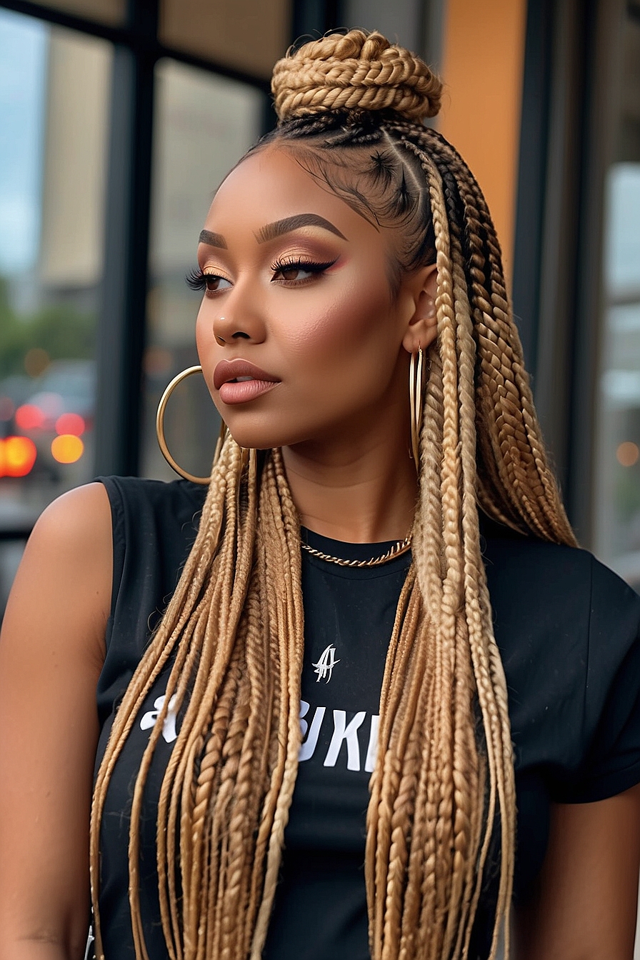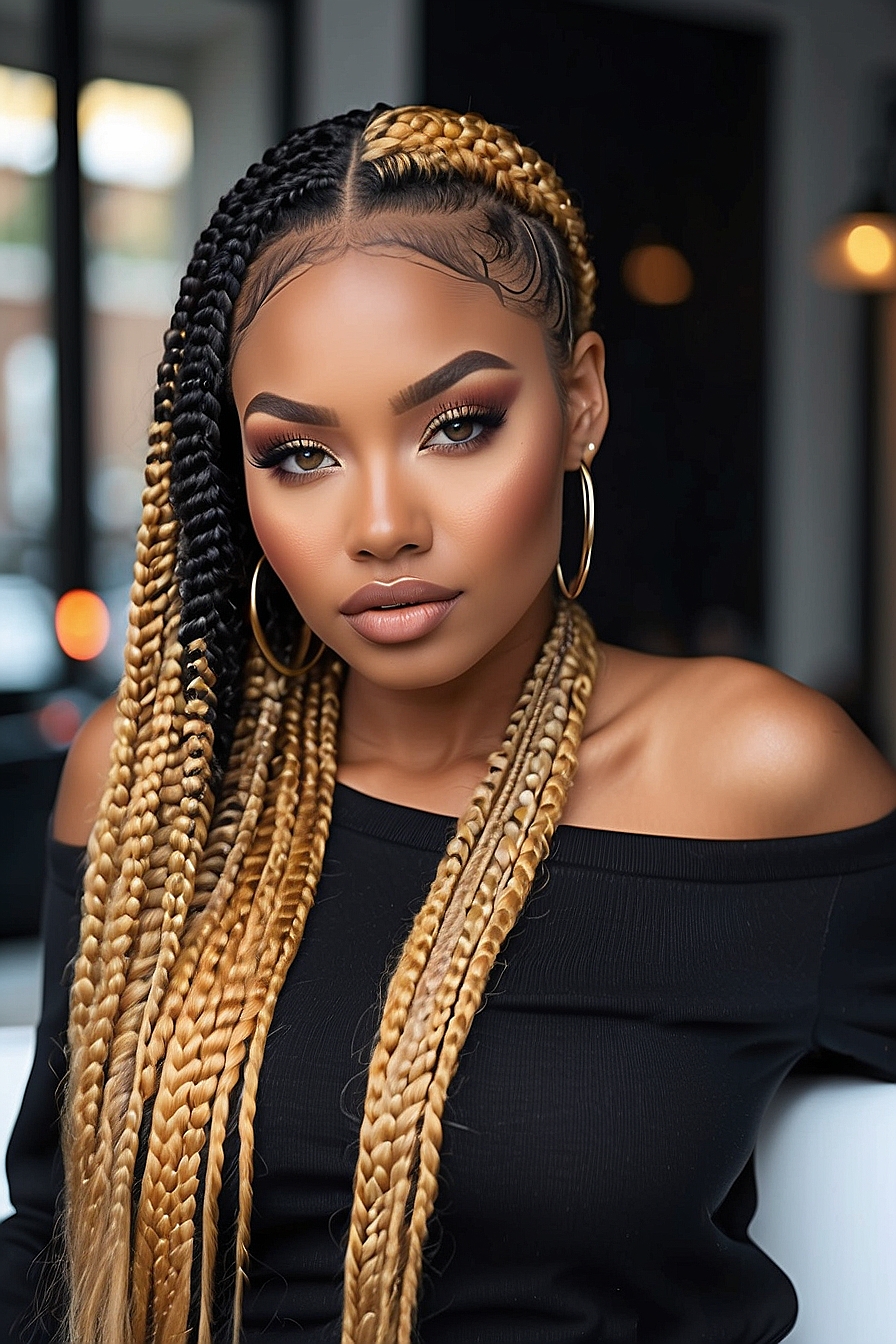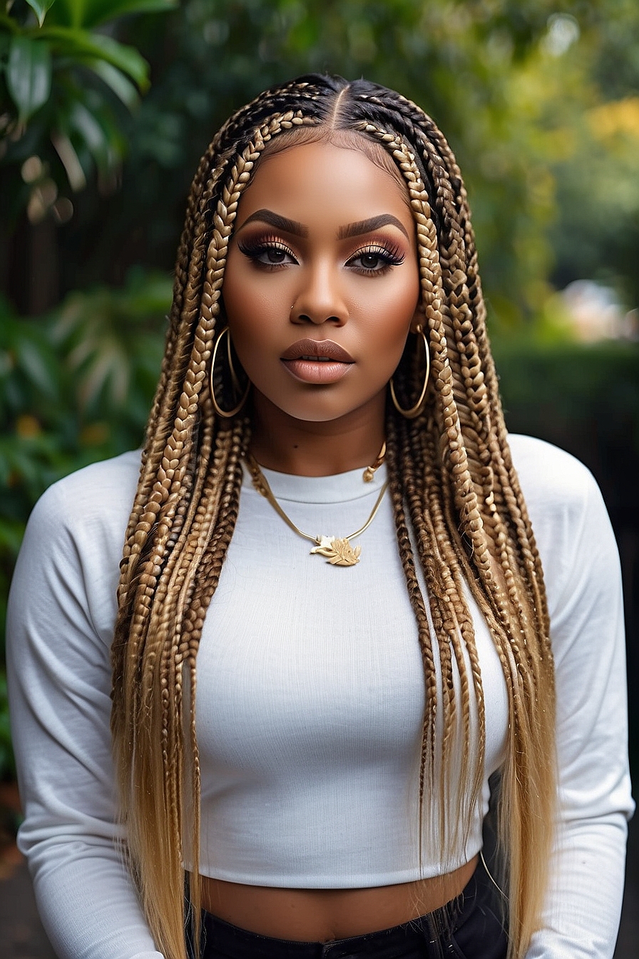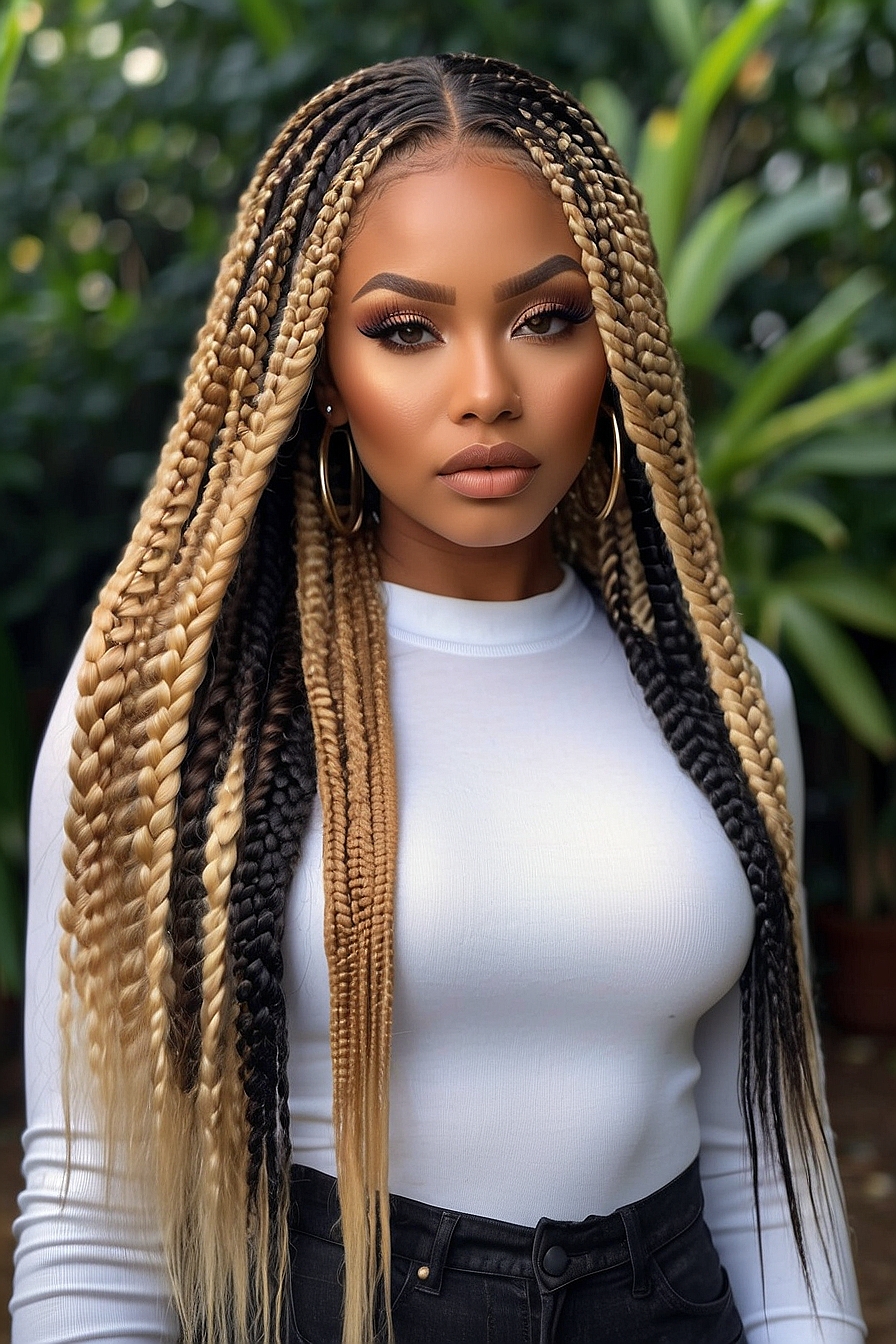 Discover breathtaking knotless box braids with blonde ends on our website. Get inspired by stunning examples and elevate your hairstyle game today!