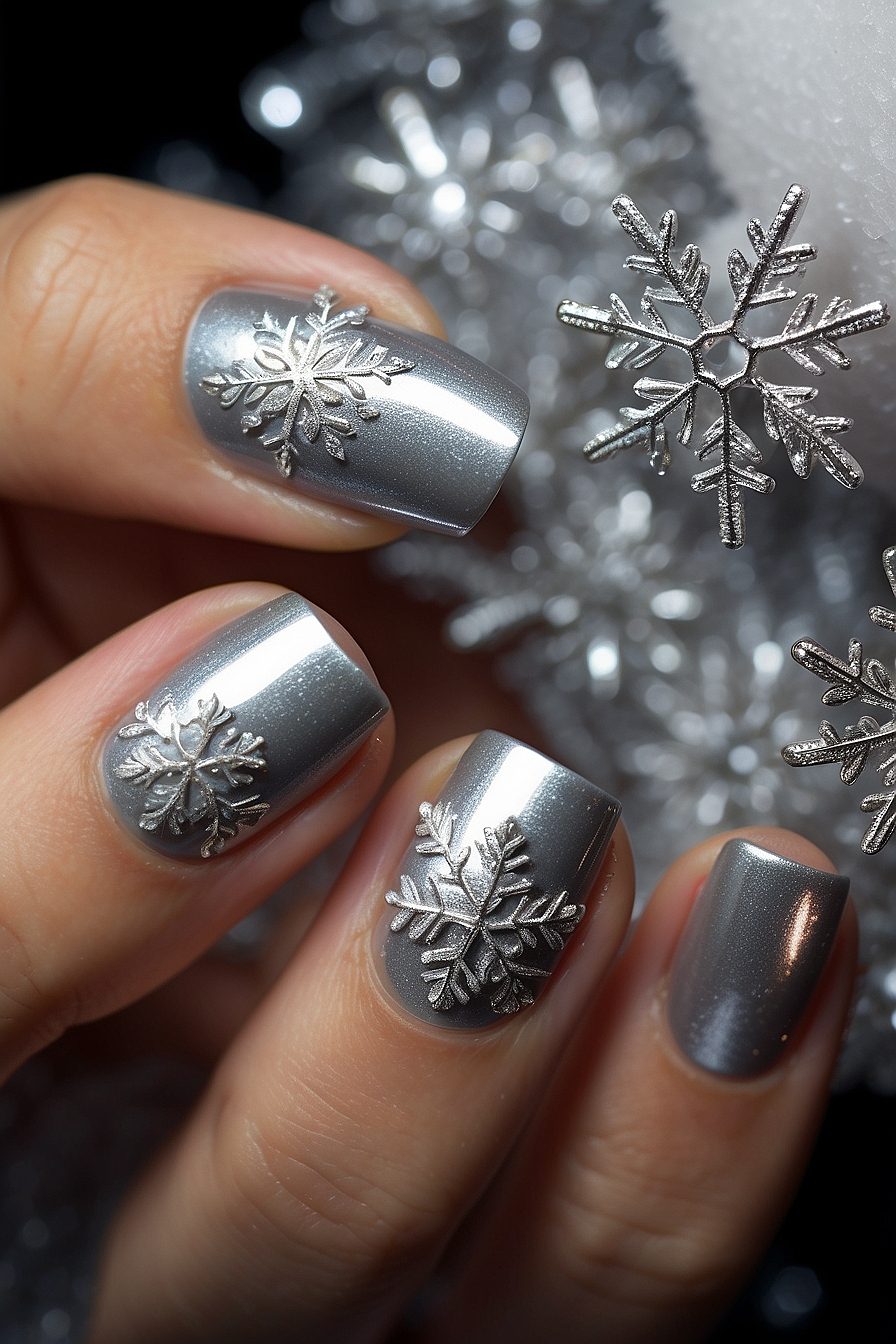 10 Stunning Ways to Rock Silver Snowflake Nails