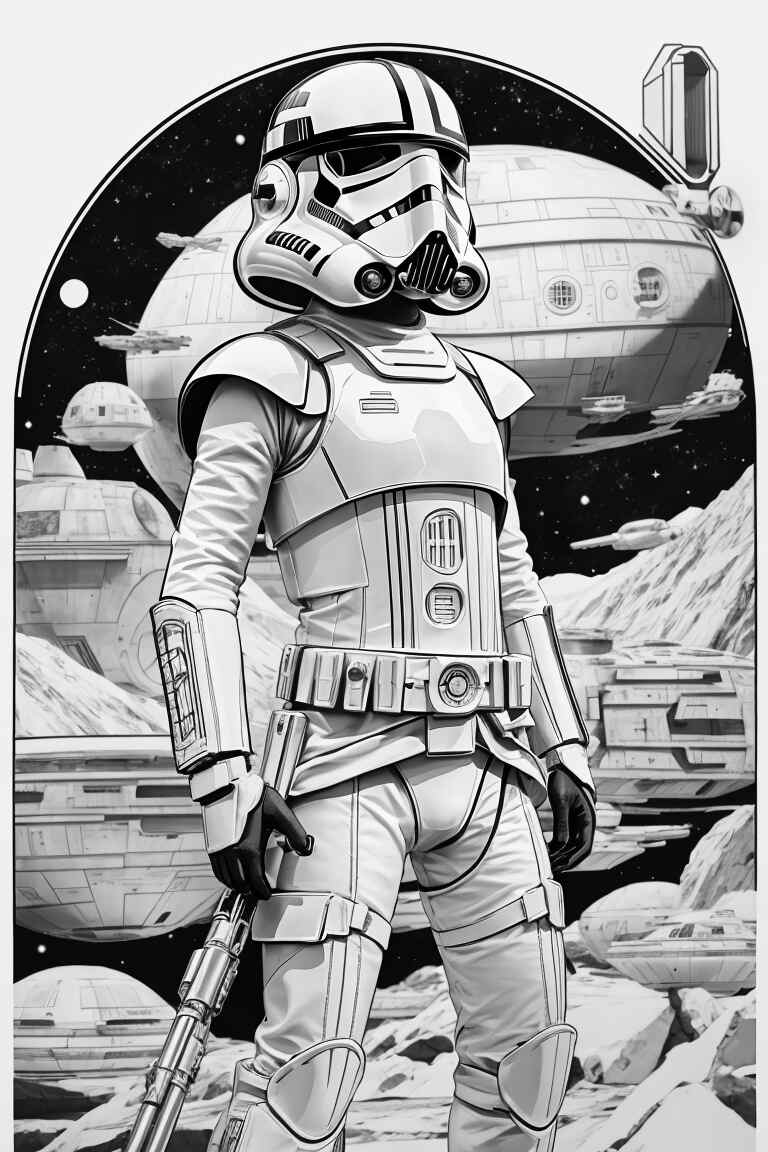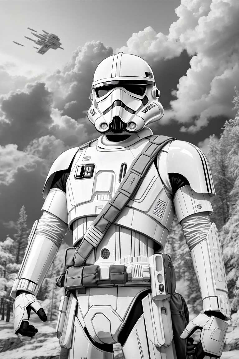 Si prefieres un personaje más icónico, entonces Kylo Ren es perfecto para ti. Puedes colorear su máscara oscura con tonos negros y plateados, y su capa con un rojo intenso. No olvides dibujar sus cicatrices y darle un toque siniestro con sombras profundas. Kylo Ren es el lado oscuro de la Fuerza, ¡así que deja que tus colores reflejen su poder maligno!