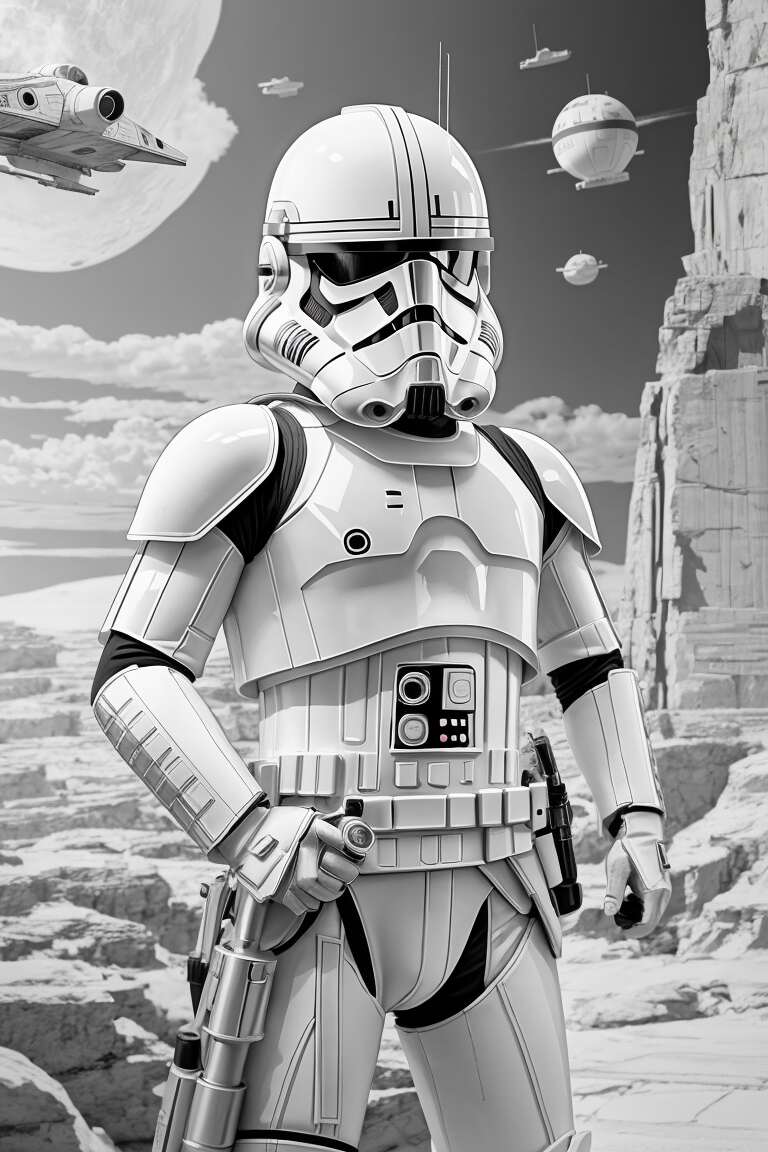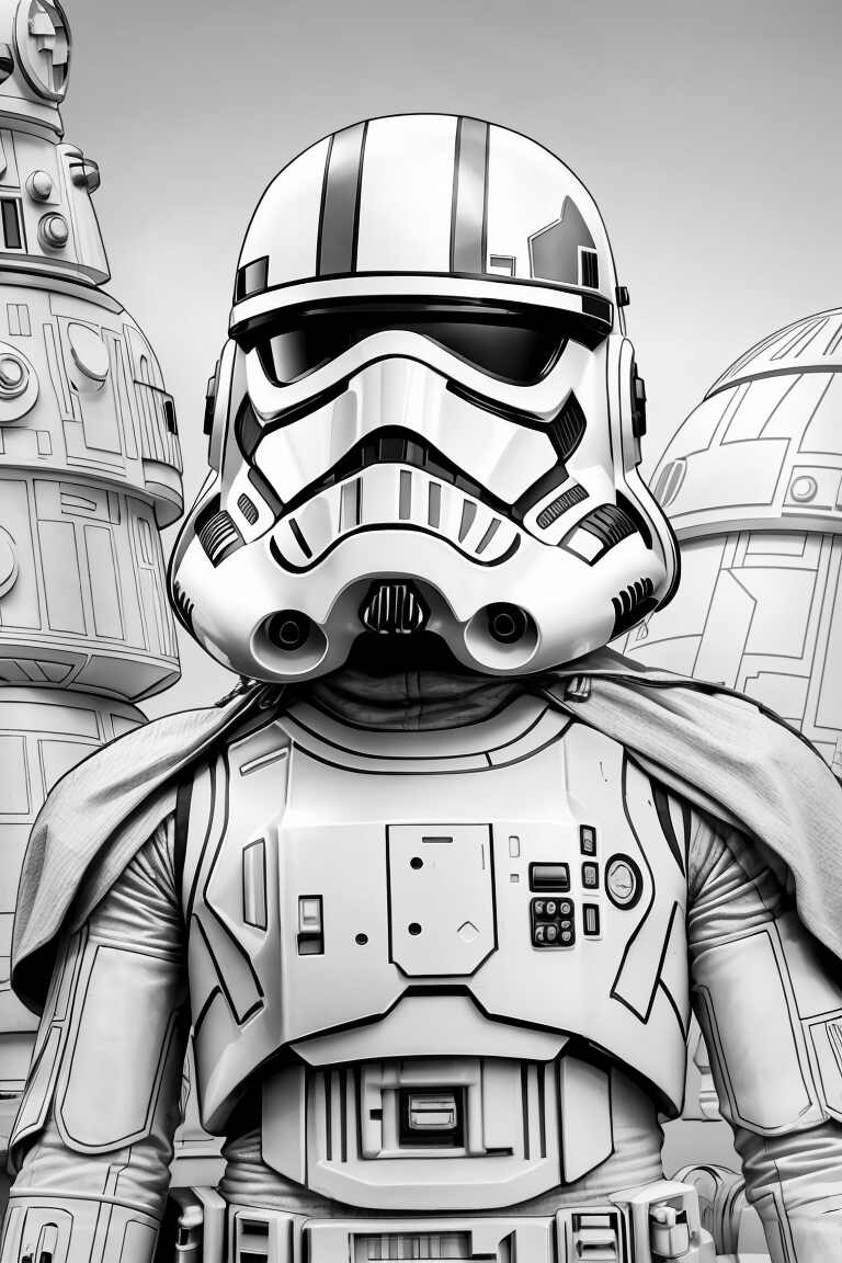 Pero no podemos olvidarnos de los droides más queridos de la galaxia. BB-8 es un personaje adorable y lleno de personalidad. Puedes colorear su cuerpo redondo con colores brillantes como el naranja y el blanco, y darle un toque especial a sus detalles mecánicos. ¡BB-8 es el compañero perfecto para colorear!