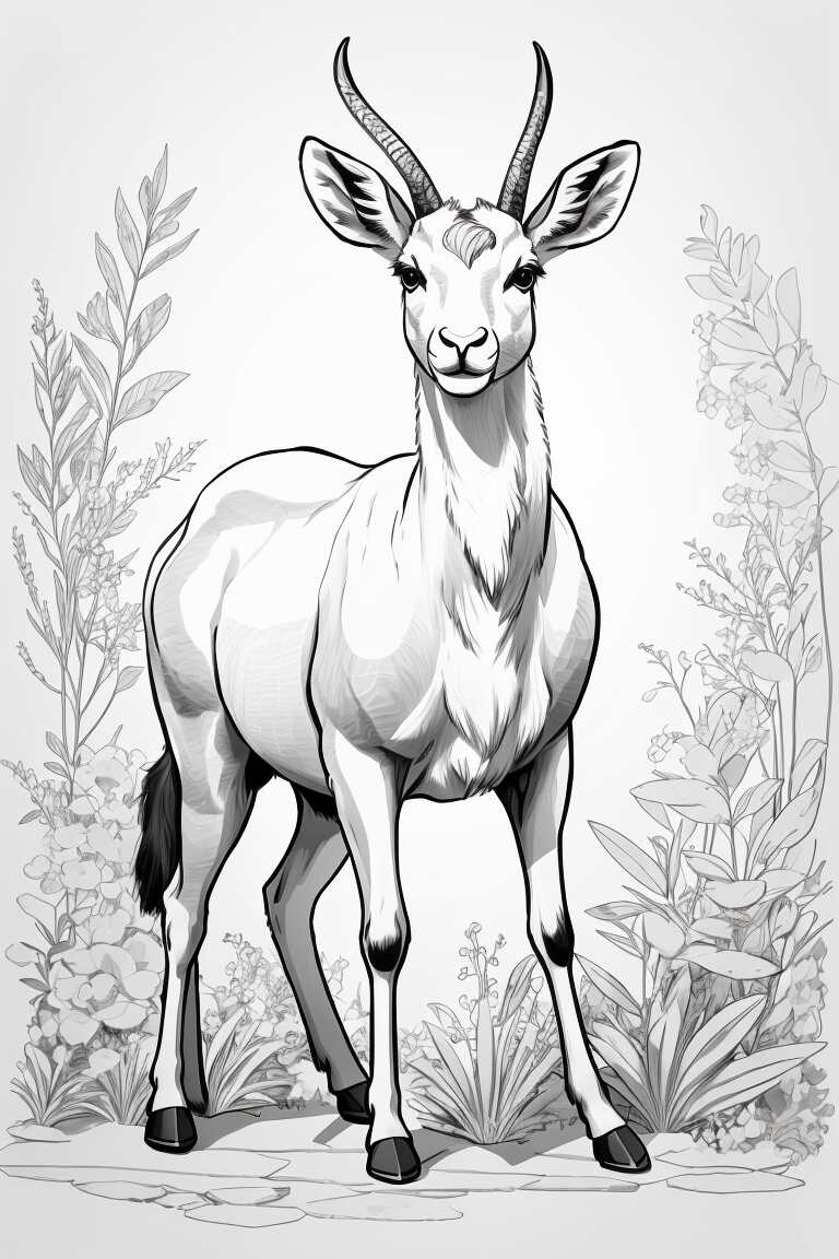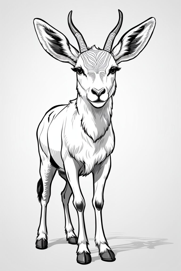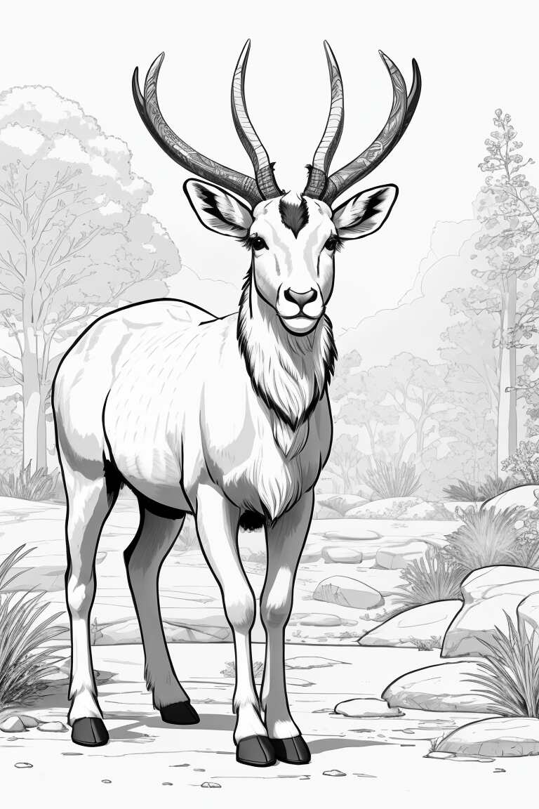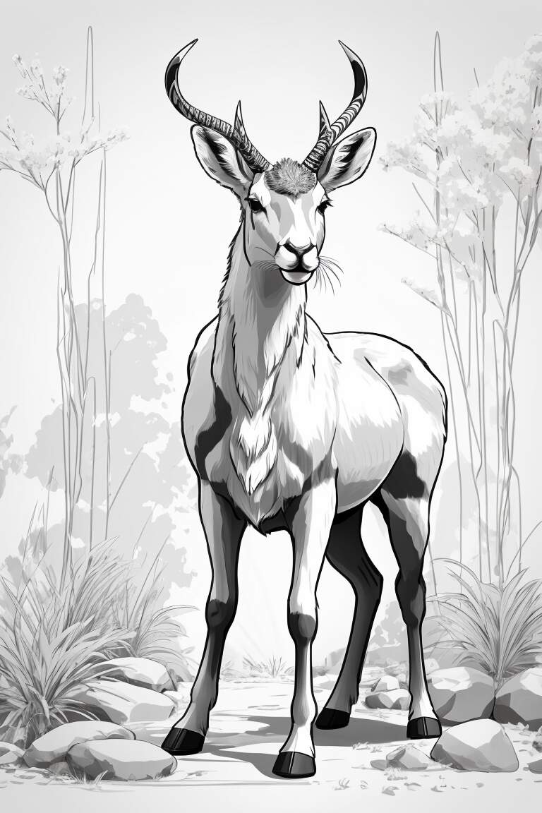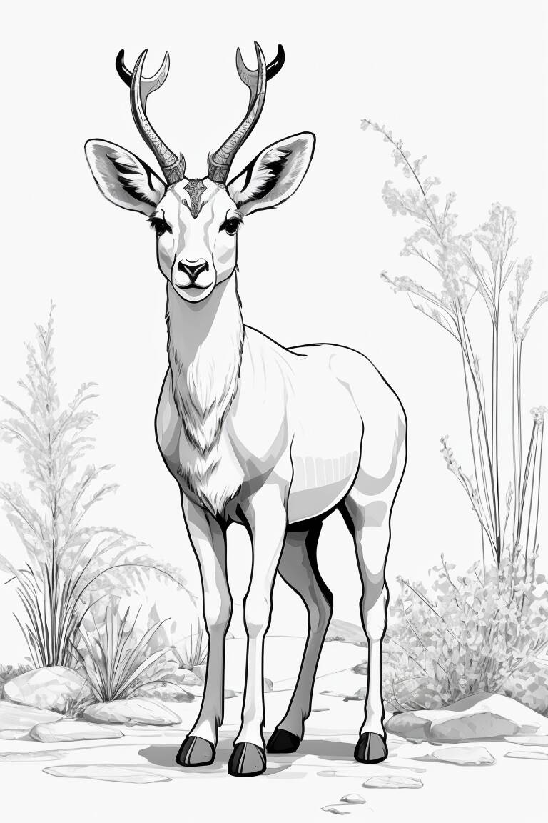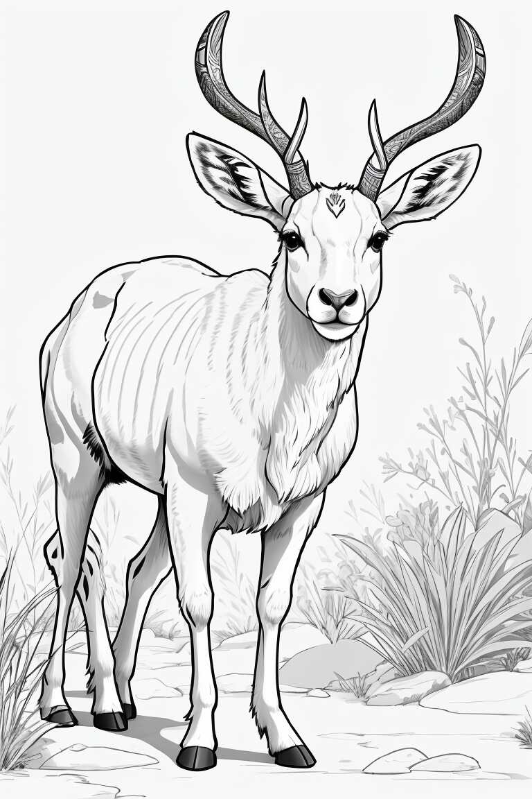 Si prefieres un antílope más exótico, puedes colorear un dibujo de un kudu, con sus espectaculares cuernos en espiral. Puedes usar tonos grises y marrones para su pelaje, y agregar algunos detalles en blanco para resaltar su belleza. ¡No olvides dibujar una expresión serena en su rostro!