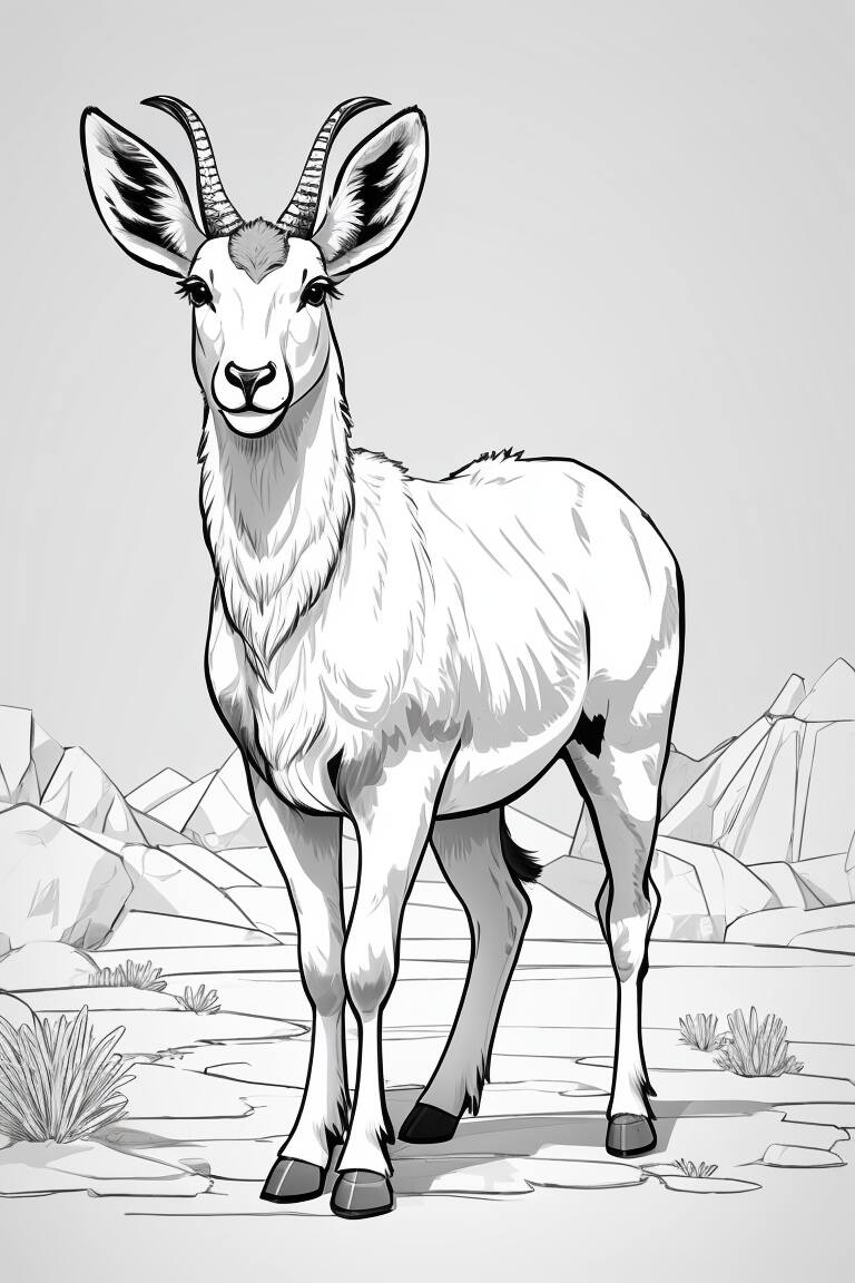 Puedes colorear su pelaje en tonos marrones y agregar algunos toques de blanco en el vientre y las patas. No olvides resaltar sus característicos cuernos en forma de lira, que los machos utilizan para defender su territorio y atraer a las hembras.
