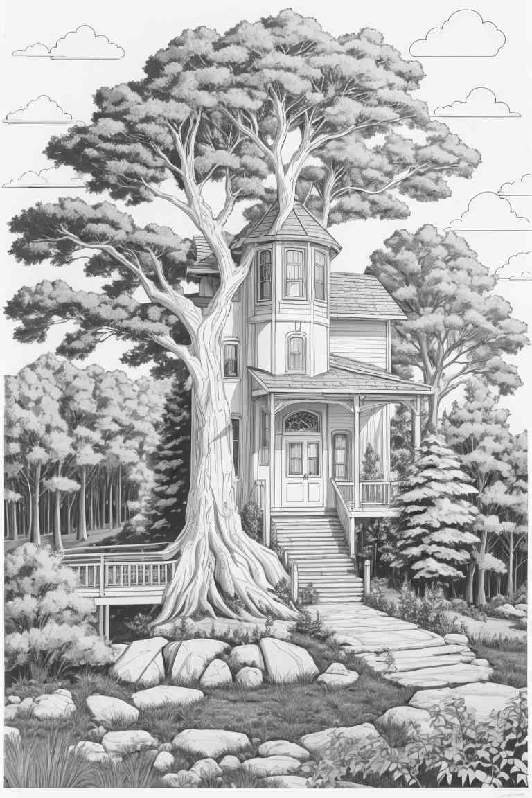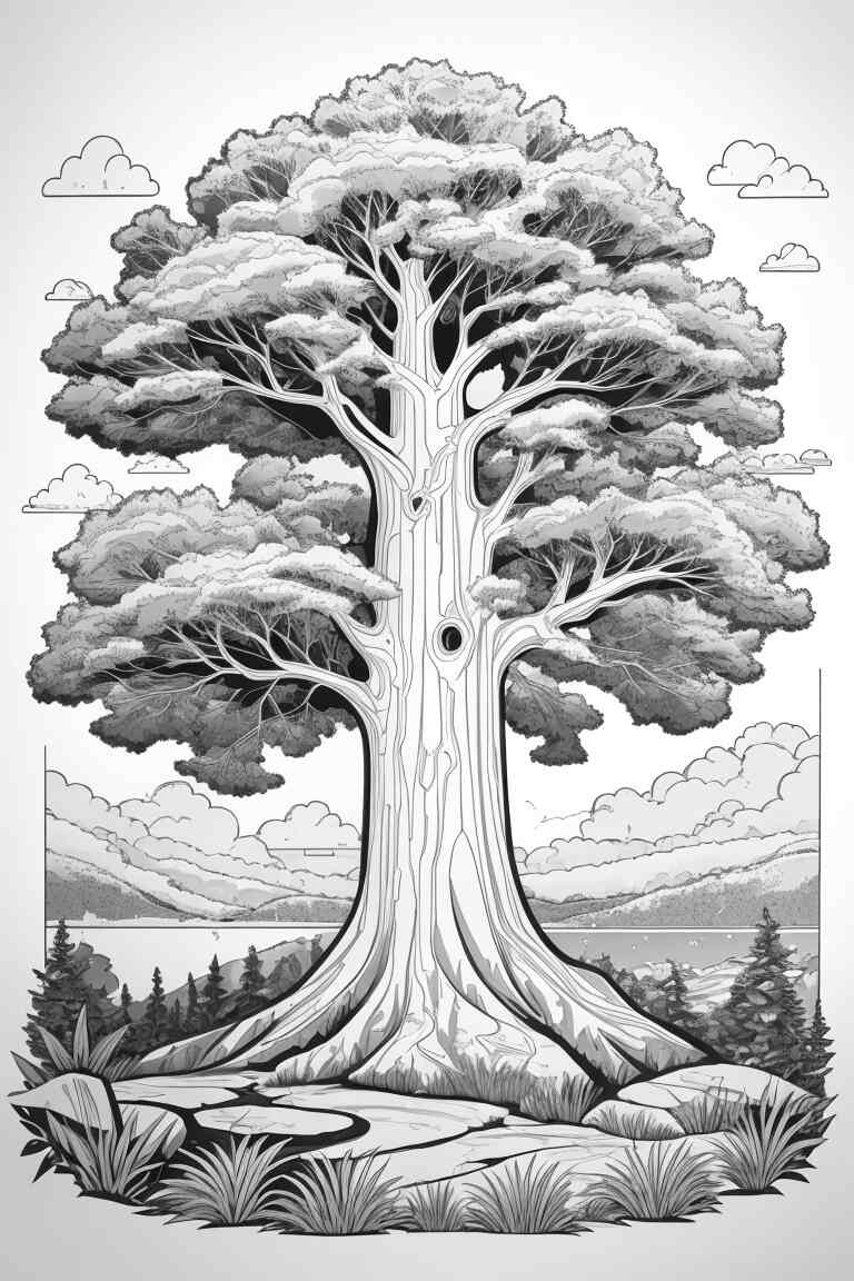 Comencemos con uno de los árboles más emblemáticos de América del Norte: el imponente roble. Su tronco fuerte y sus ramas extendidas hacen de este árbol una presencia imponente en los bosques. No olvides colorear las hojas en tonos de verde oscuro y añadir algunos detalles en marrón para resaltar la textura de la corteza.