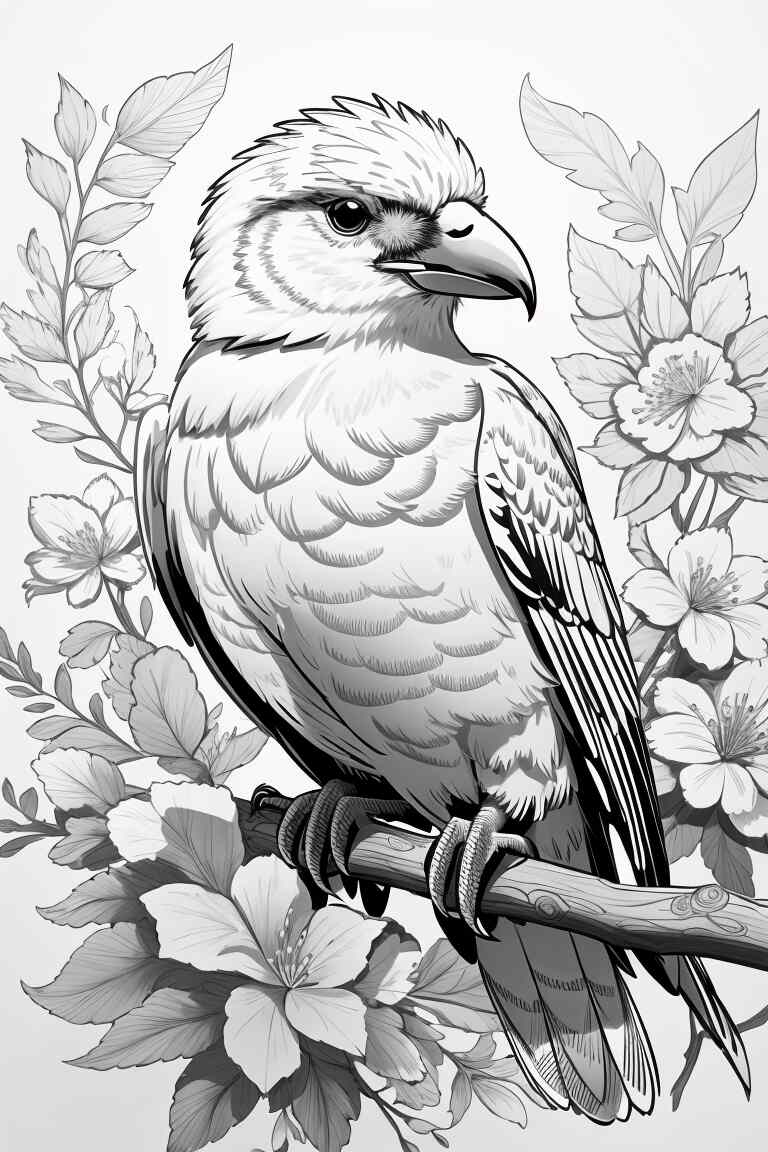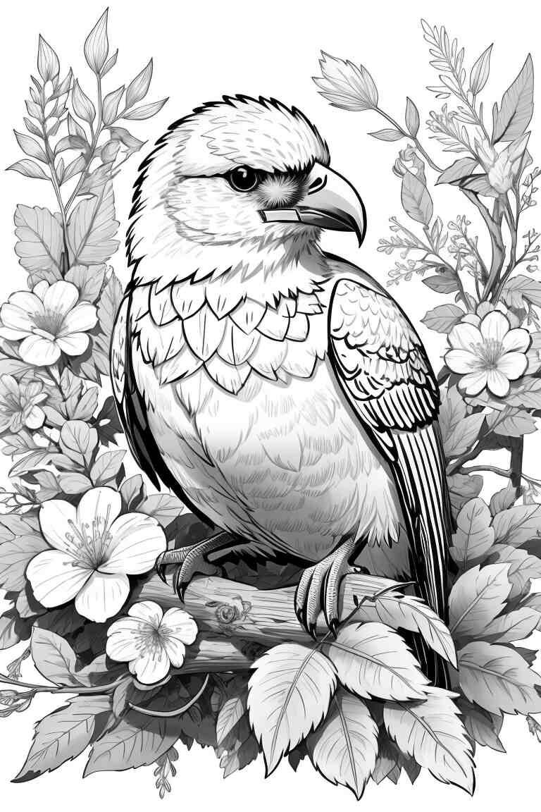 Con su imponente envergadura y su cabeza blanca distintiva, el águila calva es un símbolo de libertad y poder. Puedes utilizar tonos de marrón y gris para colorear su cuerpo, y no olvides añadir los detalles en blanco en la cabeza y cola para resaltar su belleza.
