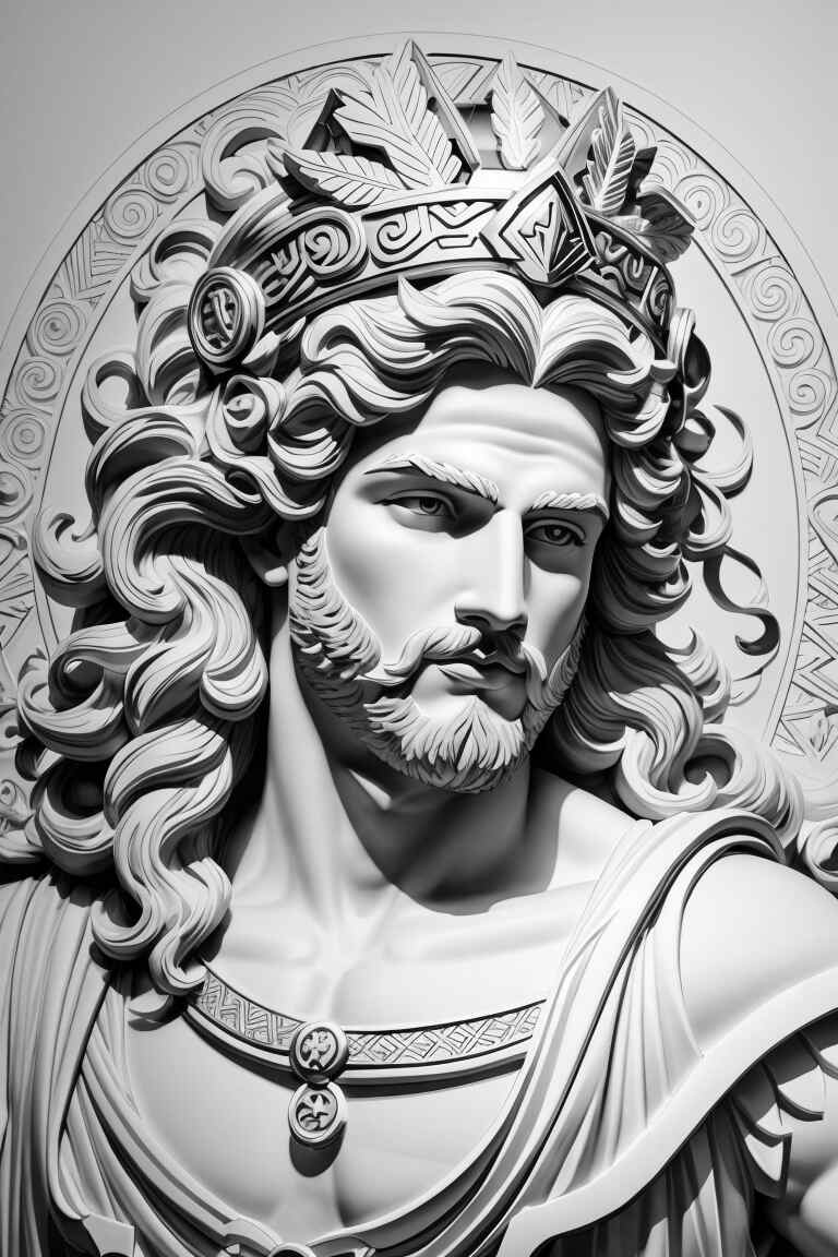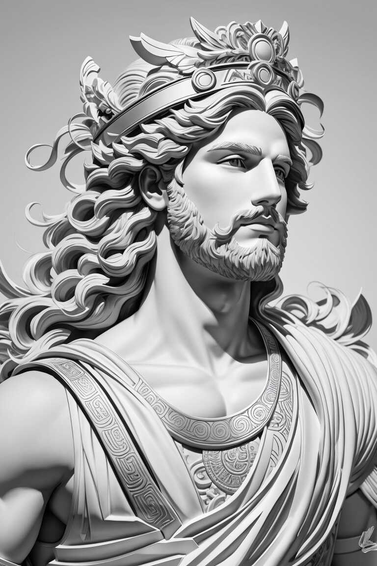 Comenzamos con el poderoso Zeus, el padre de todos los dioses. Puedes colorear su barba y cabello con tonos blancos y grises, y darle un toque de majestuosidad con destellos dorados. ¡Imagina el trueno y el relámpago saliendo de tu dibujo de Zeus!