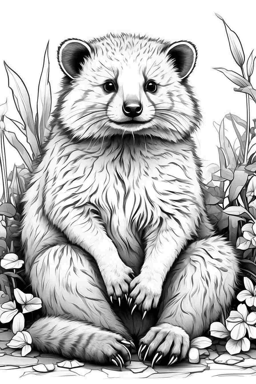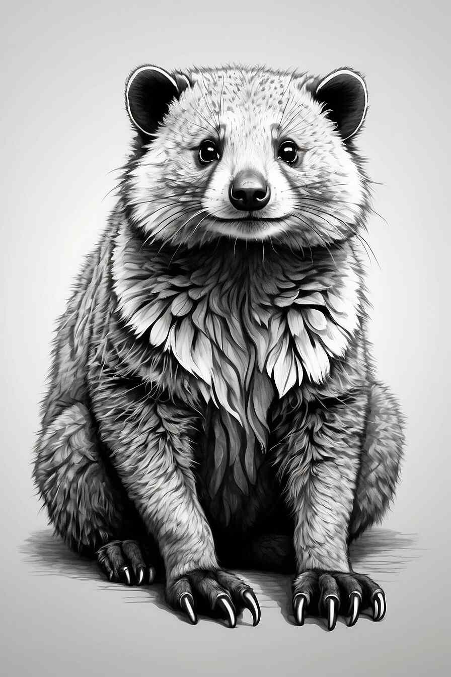 3. “Binturong en su versión superheroica”: ¿Sabían que los Binturongs tienen una habilidad especial para trepar y deslizarse entre los árboles? En este dibujo, pueden convertir a nuestro amiguito en un superhéroe volador. ¡Dale súper poderes y un traje colorido para que arrase con los villanos de la jungla!