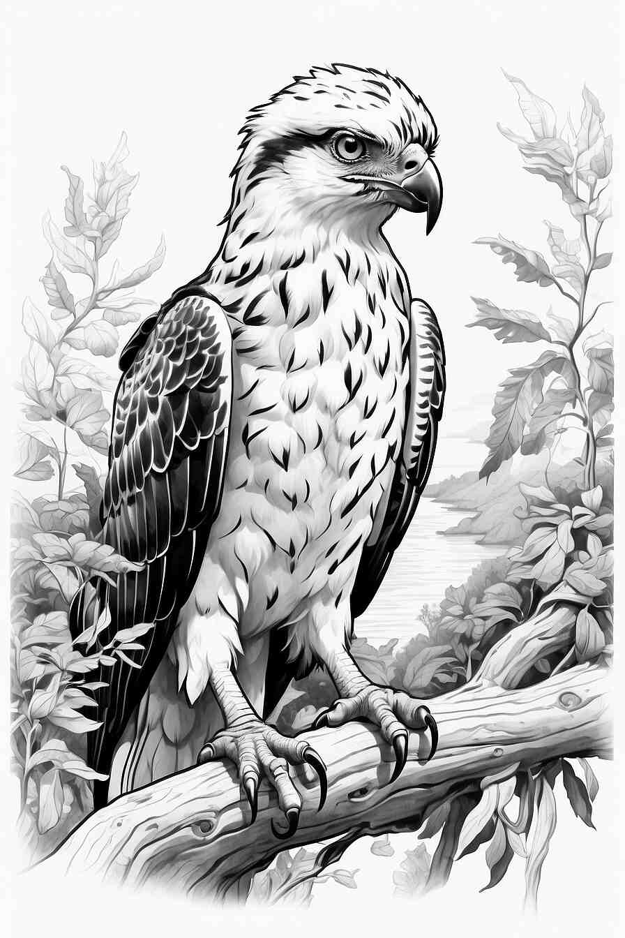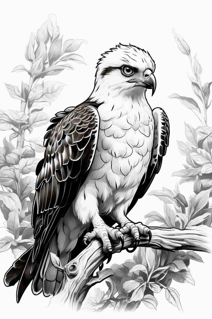 Los dibujos para colorear de aves águila pescadora te permiten explorar estos detalles y resaltar la belleza de esta especie. Puedes elegir colores vivos para las plumas y dibujar un fondo acuático para darle un toque más realista al dibujo.