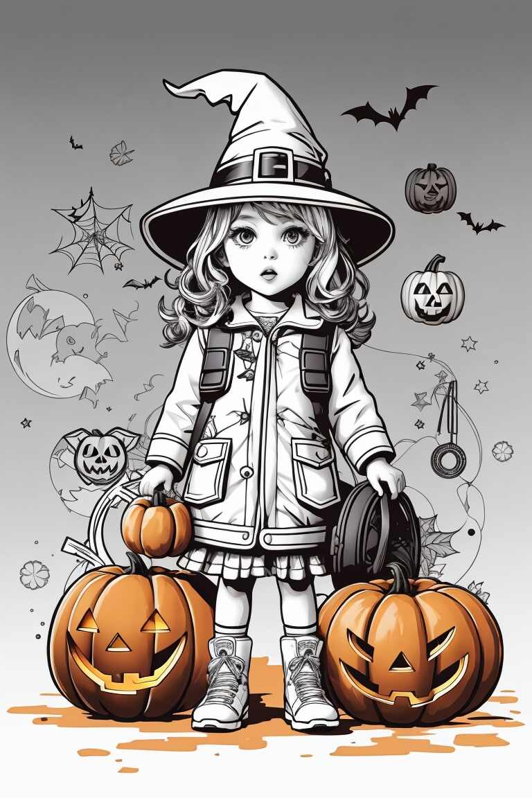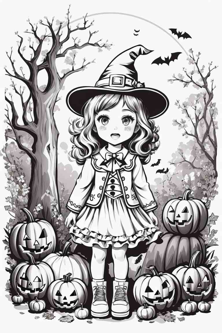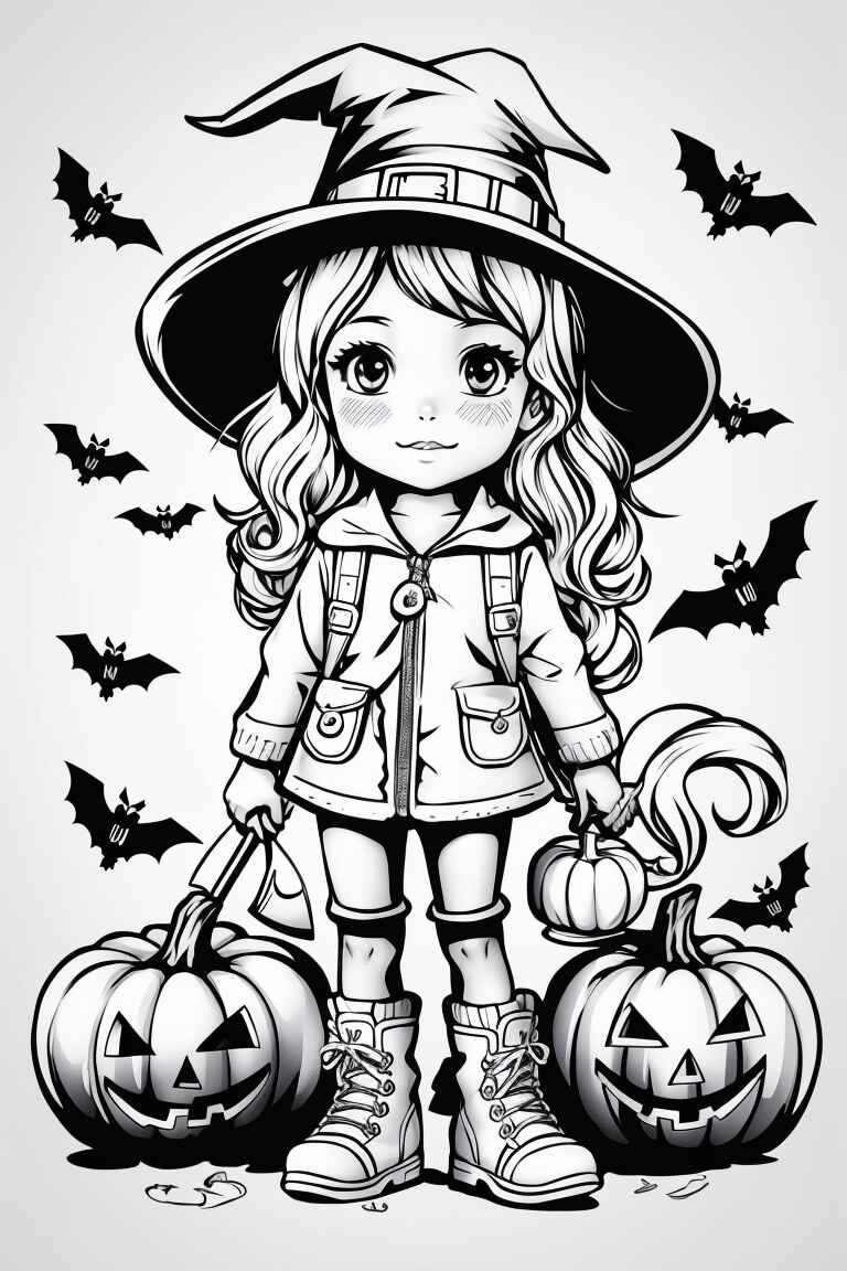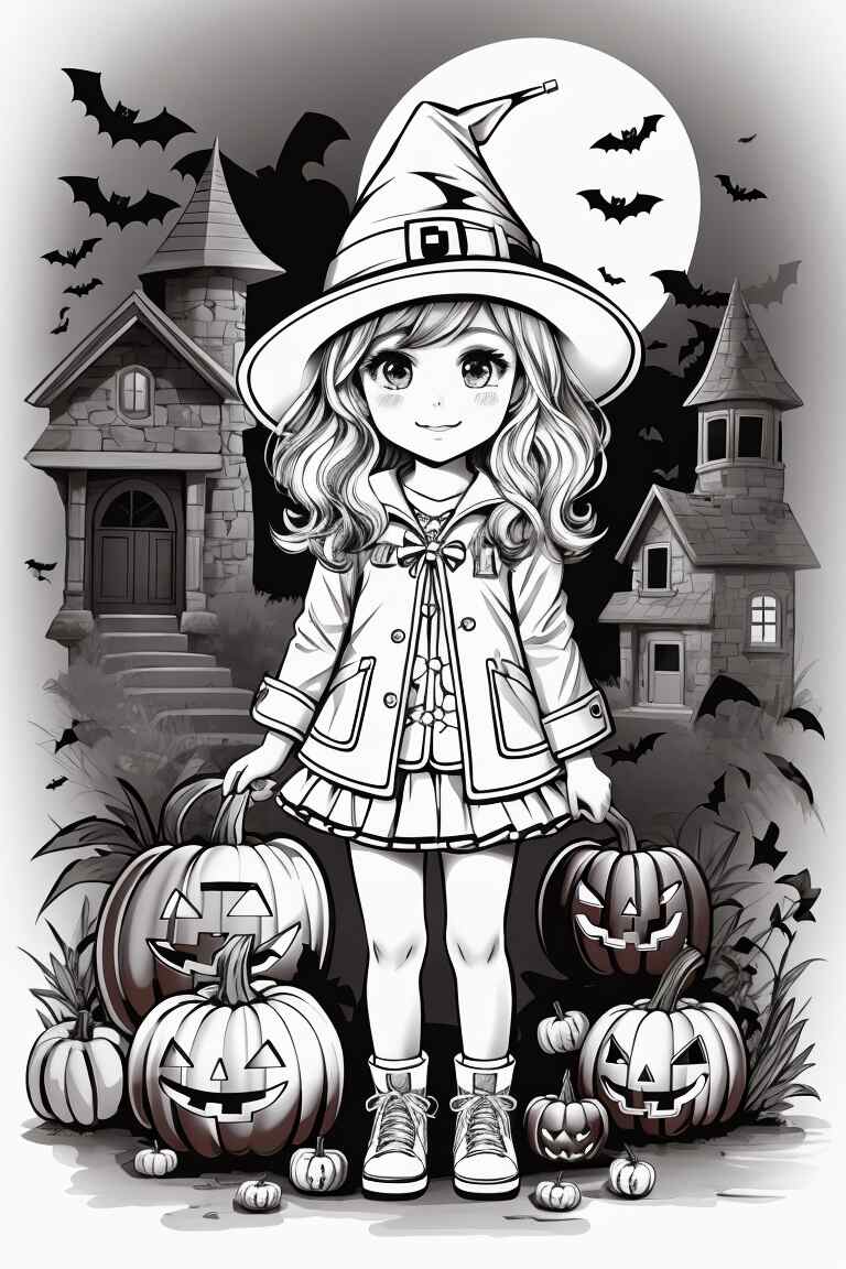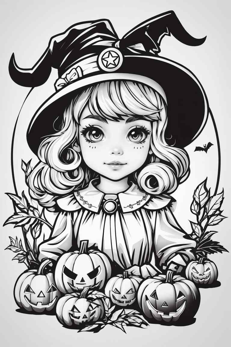 Las brujas son otro elemento popular de Halloween. Puedes encontrar muchos dibujos de brujas para colorear en línea. Los niños pueden colorear estas brujas con colores oscuros y brillantes para darles un aspecto mágico.