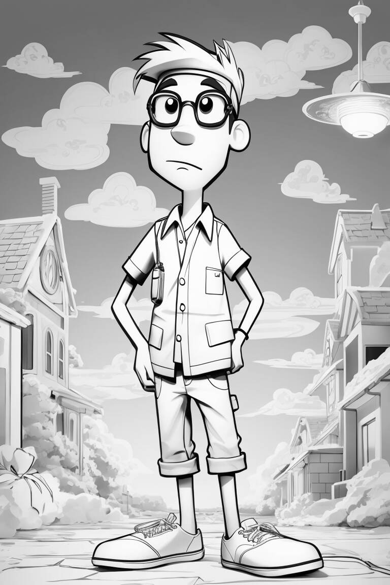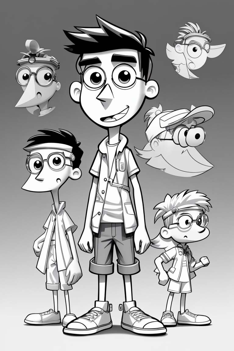 Comencemos por los protagonistas. Phineas, el niño con una imaginación desbordante, siempre tiene planes grandiosos para llenar sus días de verano. Puedes colorear su cabello pelirrojo y su característica camiseta rayada de color rojo y blanco. ¿Por qué no añadirle un toque de brillo y hacerlo aún más llamativo?