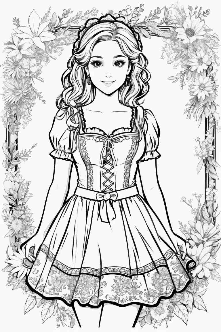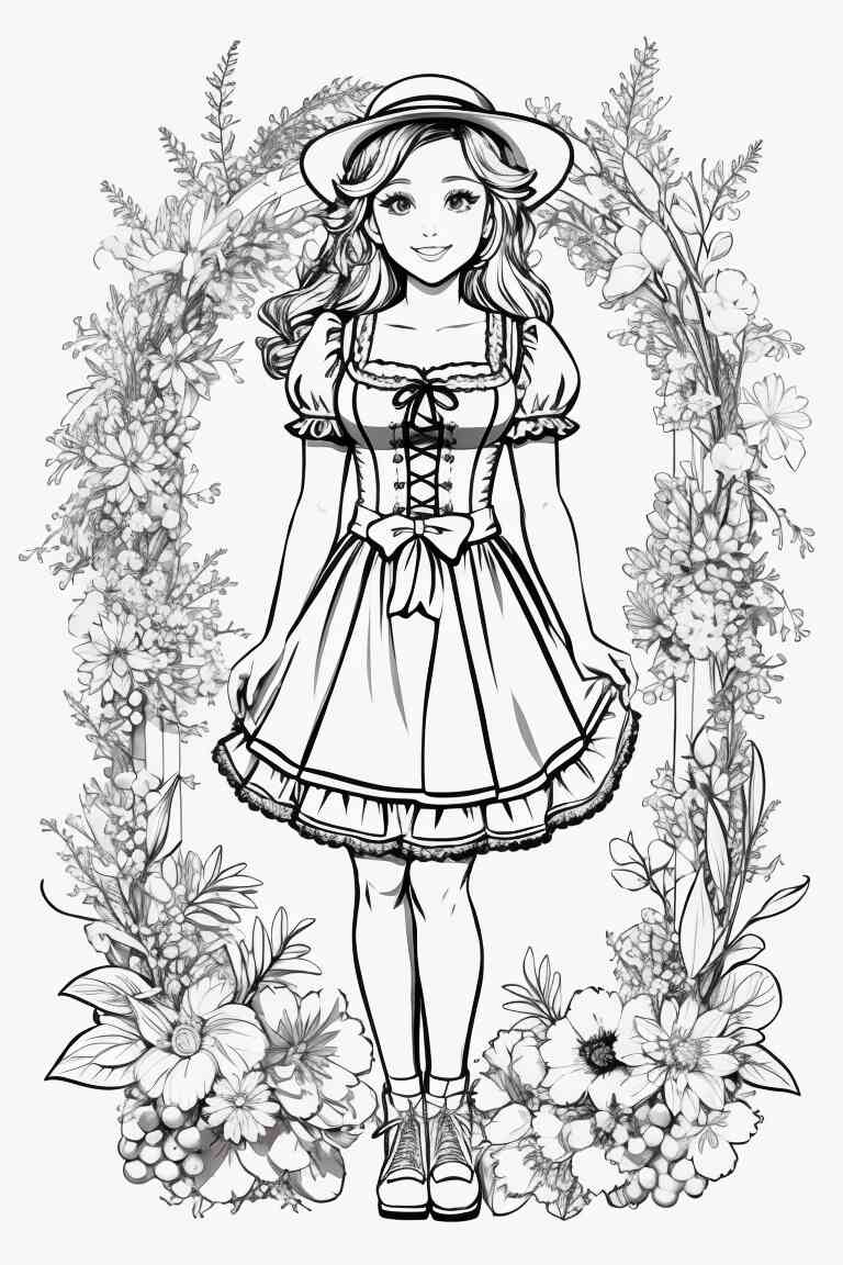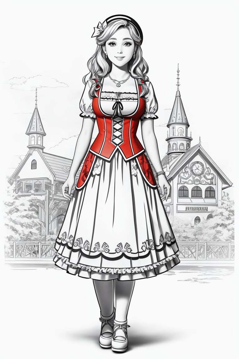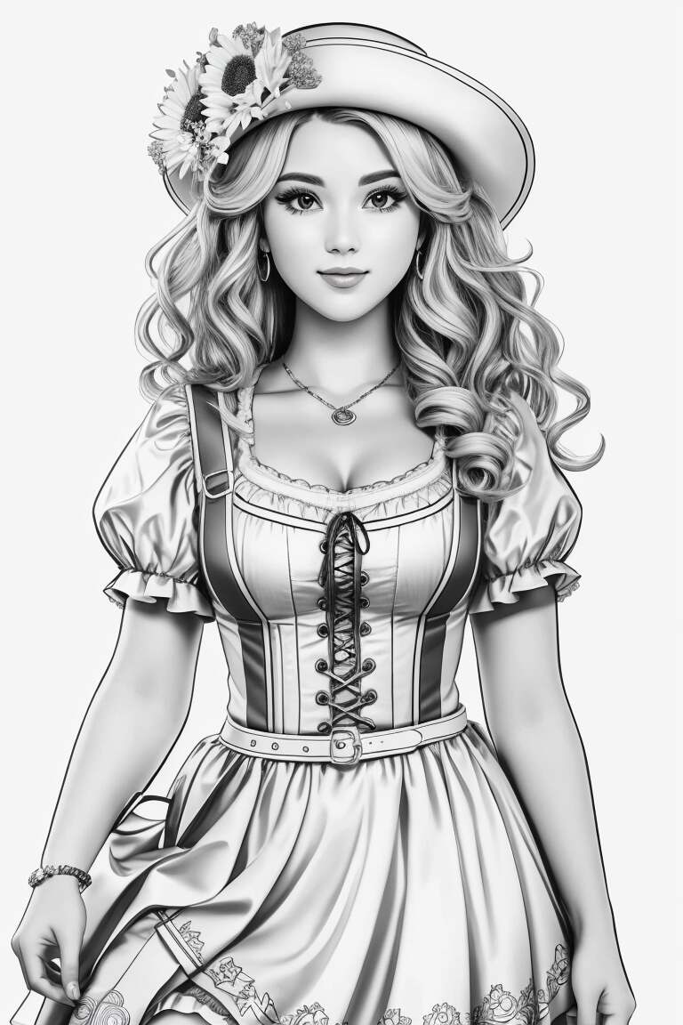 Los trajes tradicionales de Oktoberfest. Pueden colorear los hermosos vestidos y delantales de las mujeres, y los pantalones de cuero y camisas a cuadros de los hombres. ¡No olviden añadir detalles como los lazos y los sombreros de plumas!
