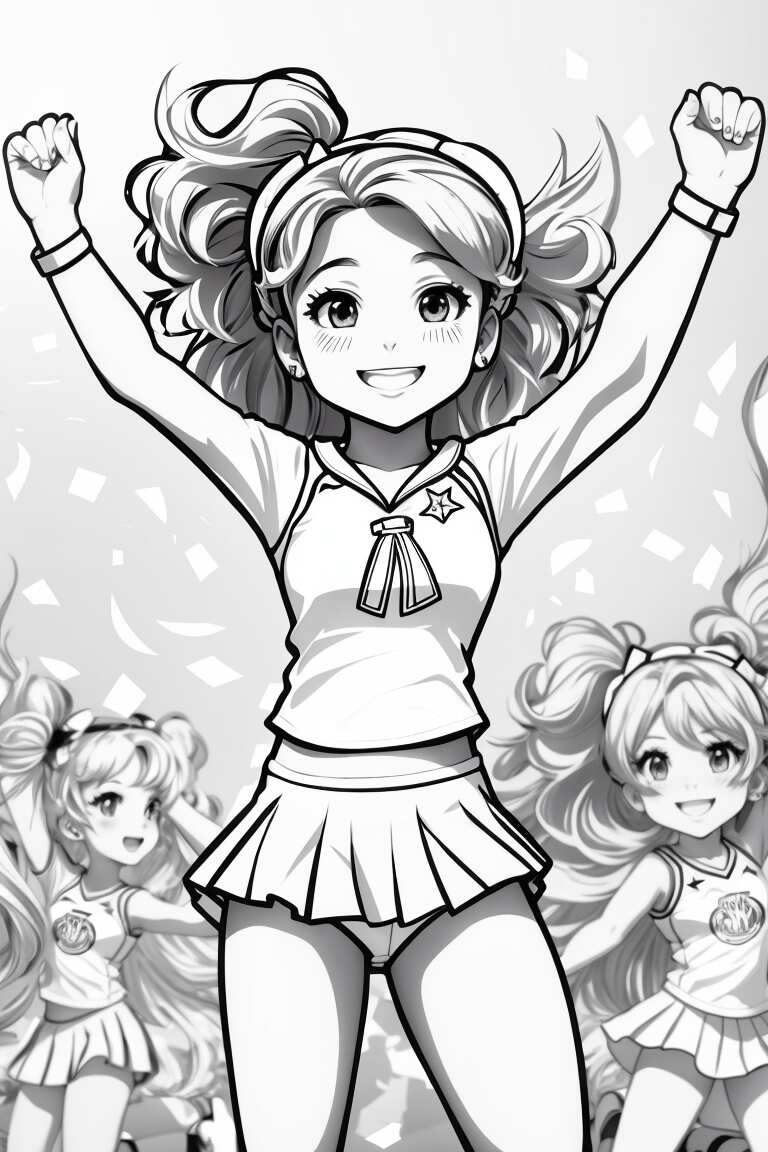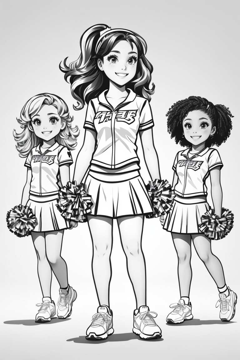 Dibujos para colorear de Porristas deportivas. Utiliza tus colores más vibrantes para resaltar los detalles de sus uniformes y hacer que destaquen en el papel.Si necesitas inspiración, te sugiero poner música enérgica de fondo mientras coloreas. ¡Esto seguramente te pondrá en el espíritu deportivo y te ayudará a crear obras maestras llenas de energía y alegría! Además, no te preocupes si no eres un experto en colorear, ¡aquí no hay juicio! Lo importante es divertirse y disfrutar del proceso creativo.