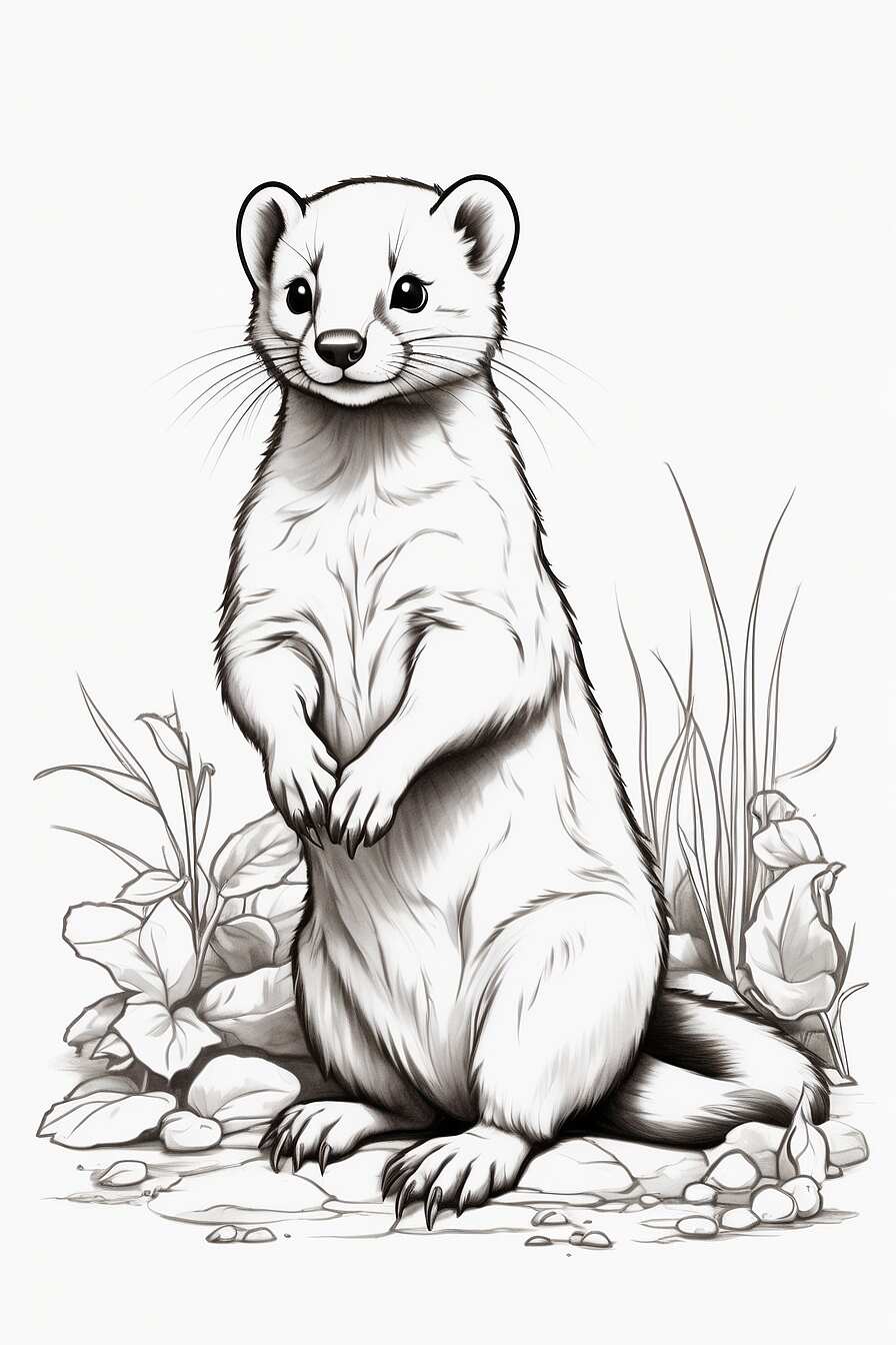 - Una Comadreja: Este dibujo muestra a una comadreja en una pose juguetona. ¡Deja volar tu imaginación y utiliza colores vibrantes para resaltar su energía!
