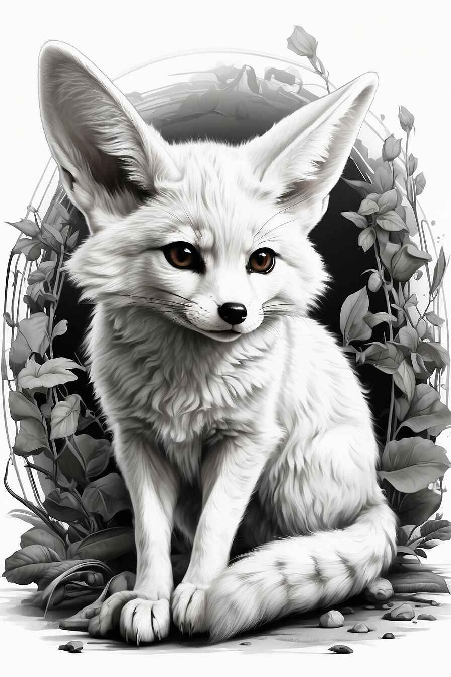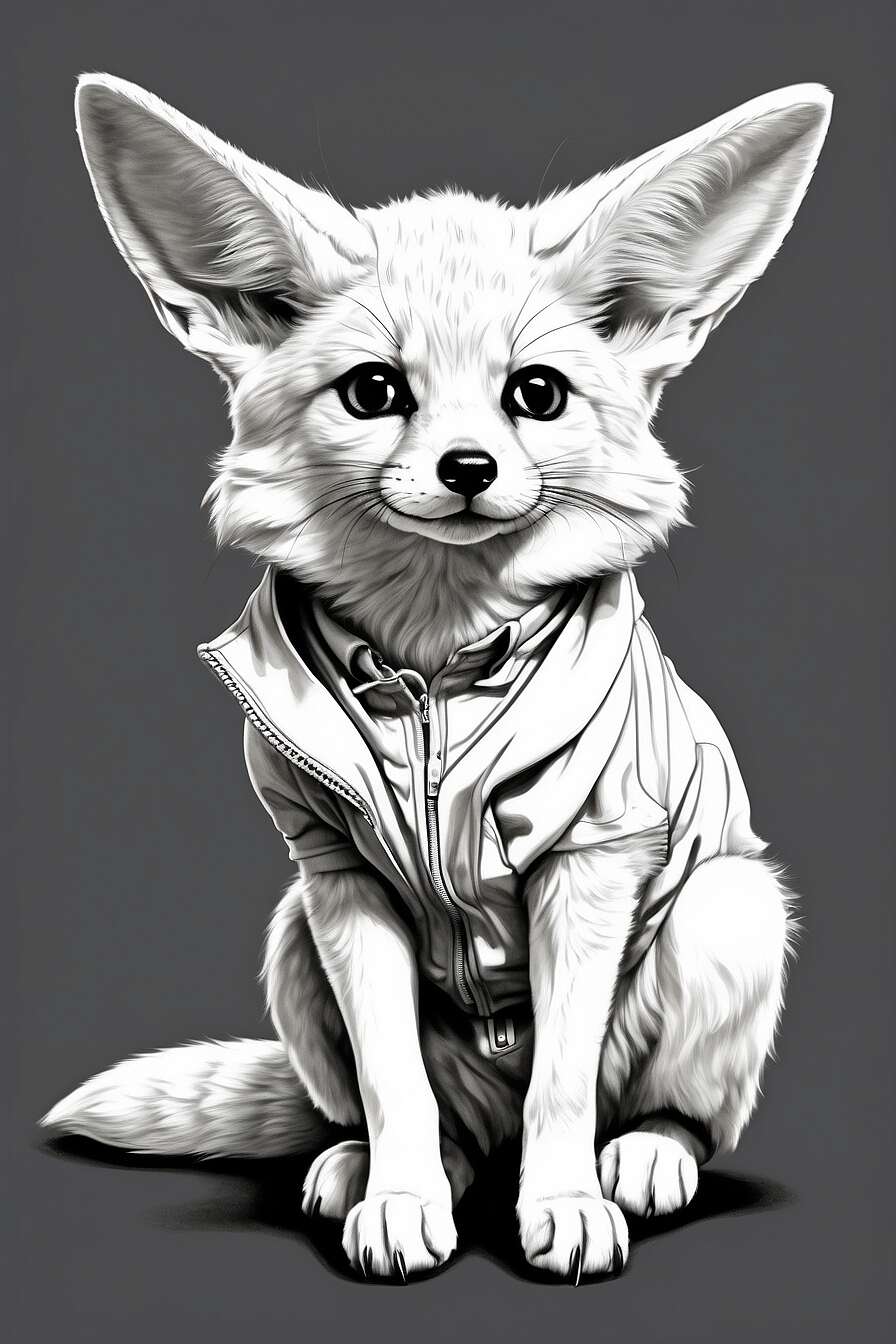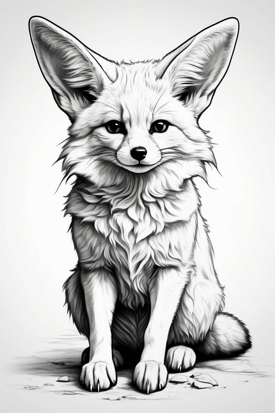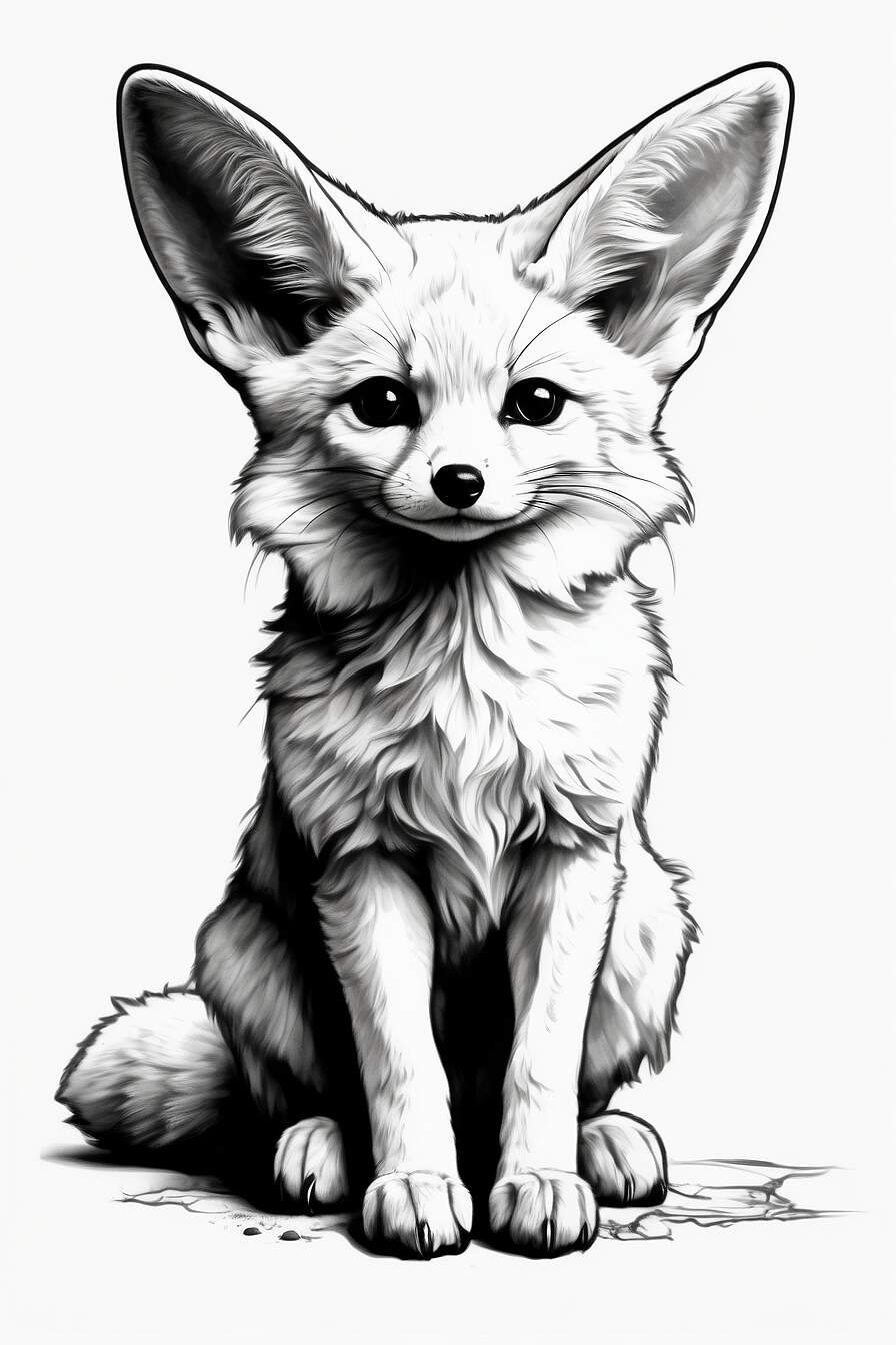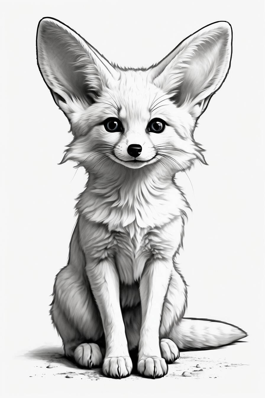En este dibujo, puedes ver a un feneco jugando en la arena del desierto. Sus grandes orejas están alertas mientras se divierte saltando y correteando. Puedes usar colores claros para representar su pelaje y tonos marrones para la arena.