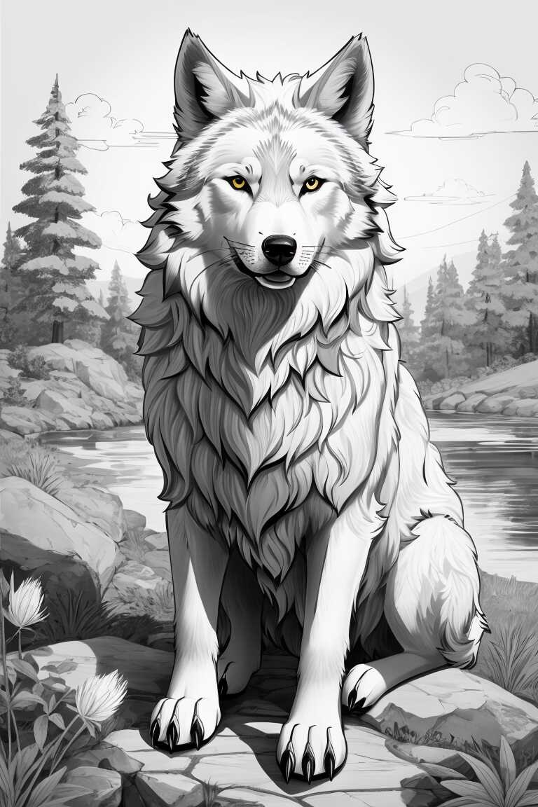 Comenzamos con el clásico lobo solitario. Puedes colorear su pelaje en tonos de gris, marrón o negro, y resaltar los detalles de su mirada feroz. No olvides dibujar su espeso pelaje y su cola esponjosa. Este lobo está listo para explorar el bosque en busca de aventuras.