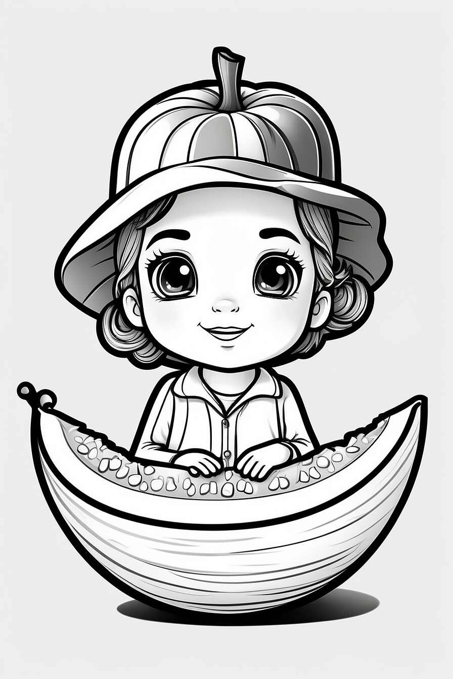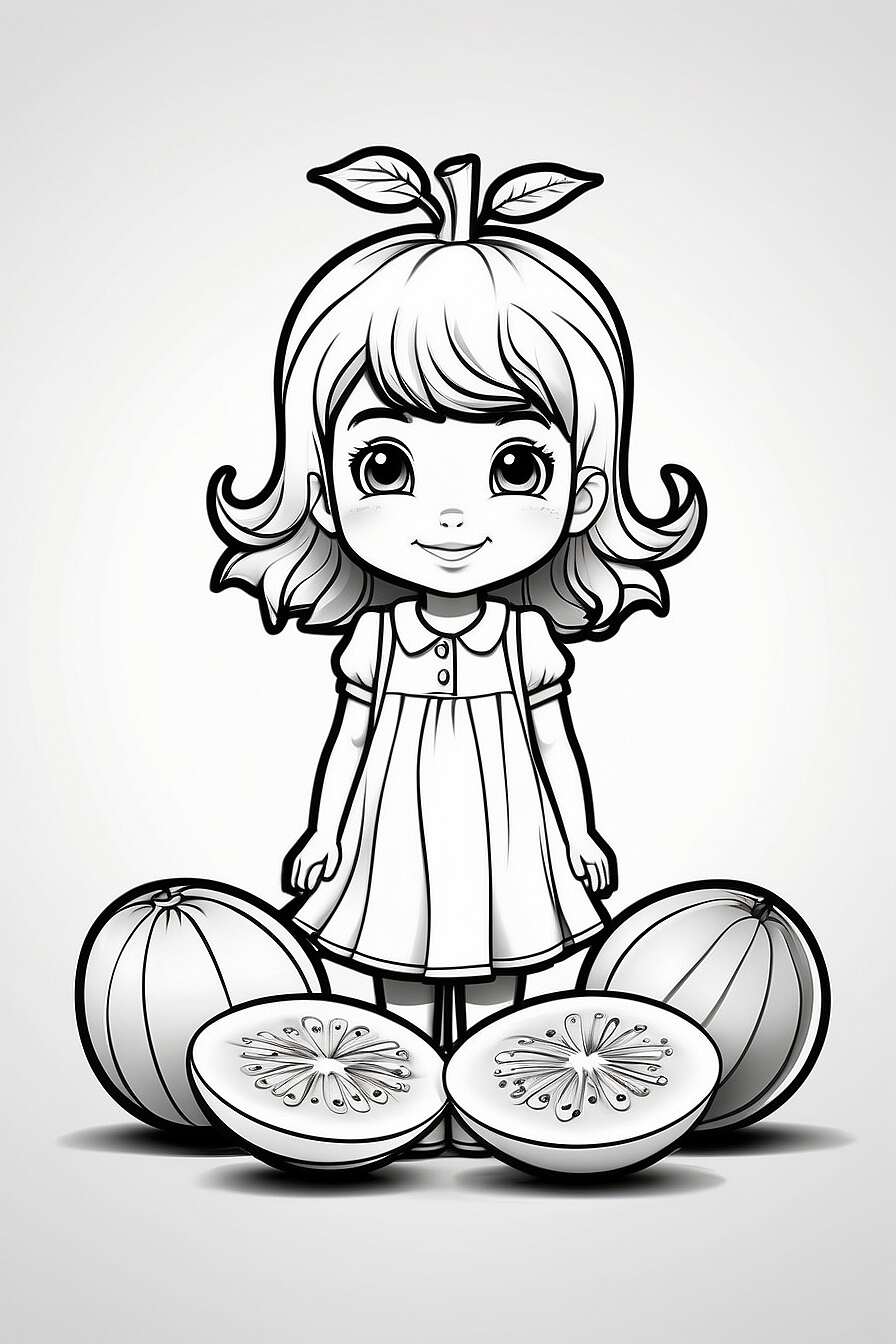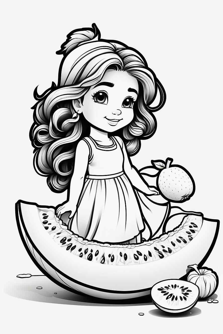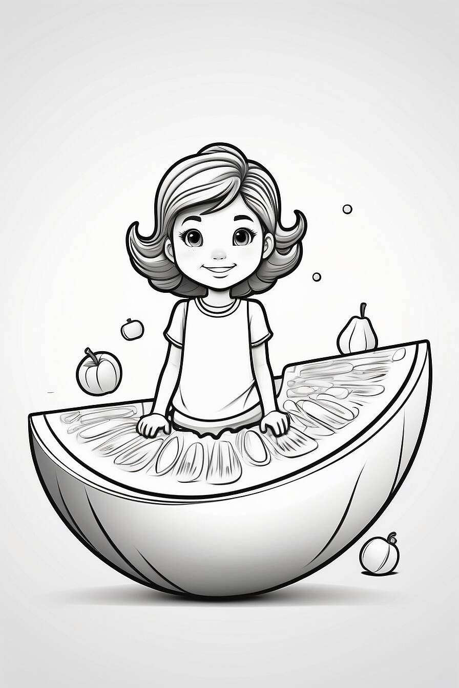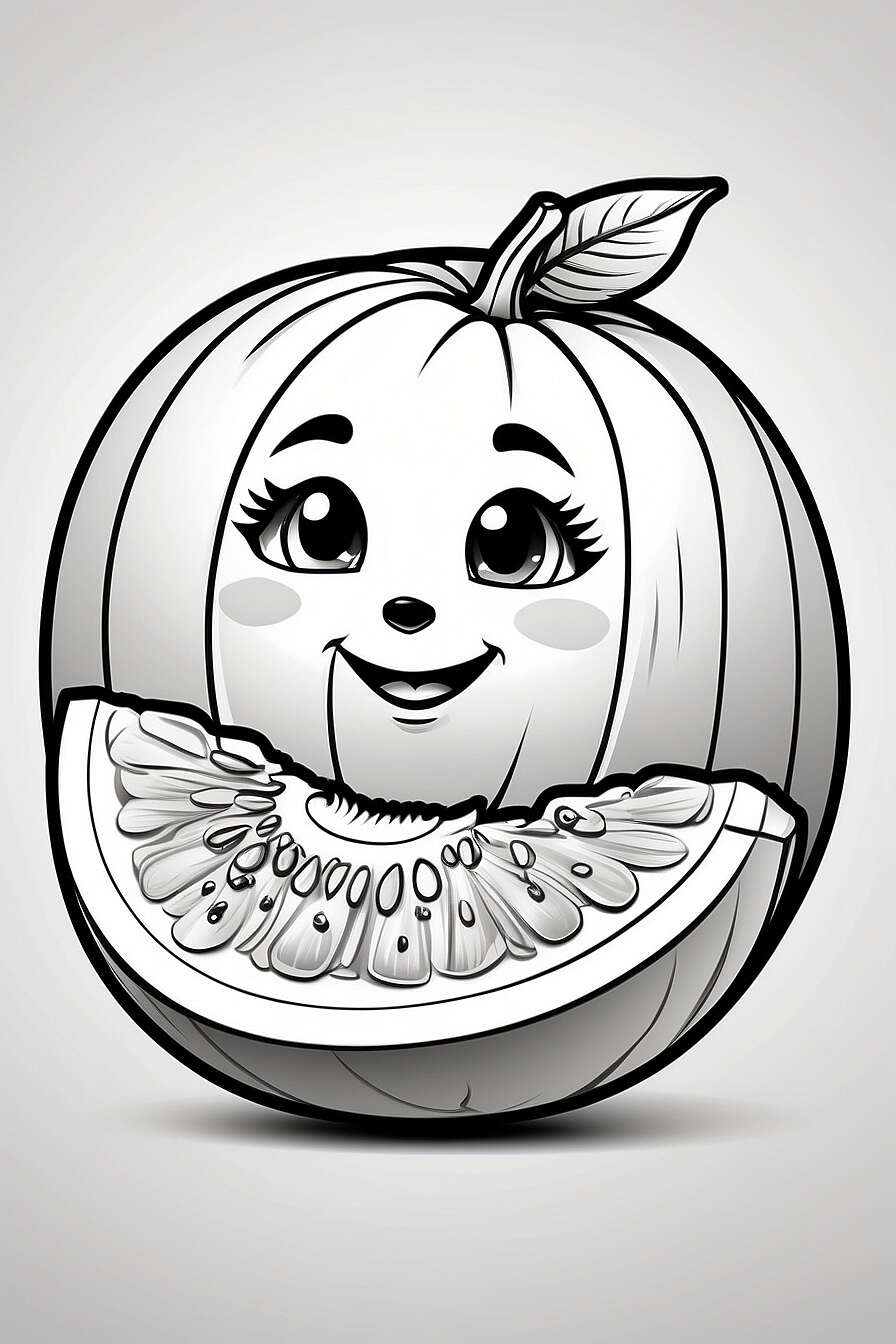 Melon dibujo para colorear. ¿Puedes sentir la frescura en tu paladar? ¡Perfecto! Ahora, comienza dibujando la forma redonda y curvilínea del melón en tu papel. Puedes hacerlo grande o pequeño, ¡tú decides!