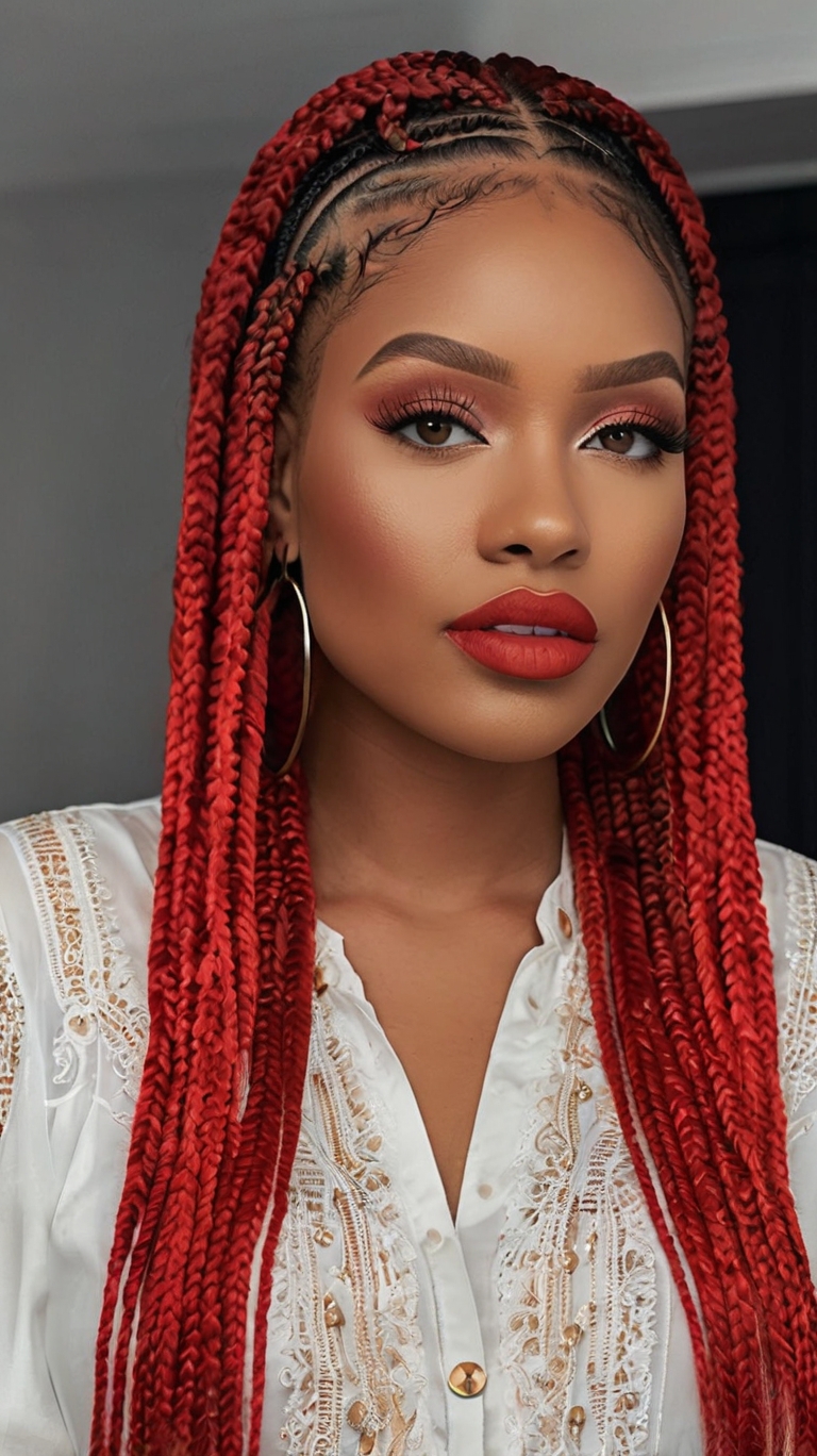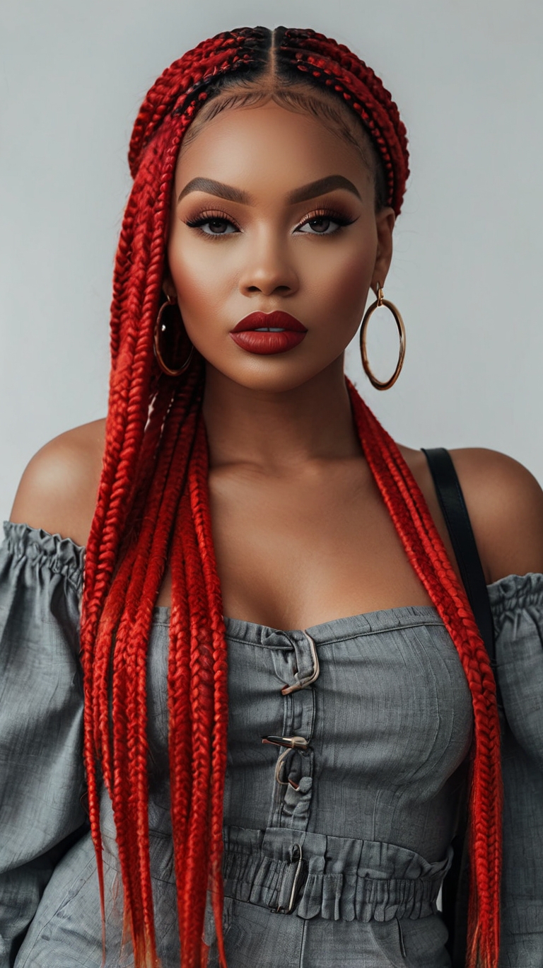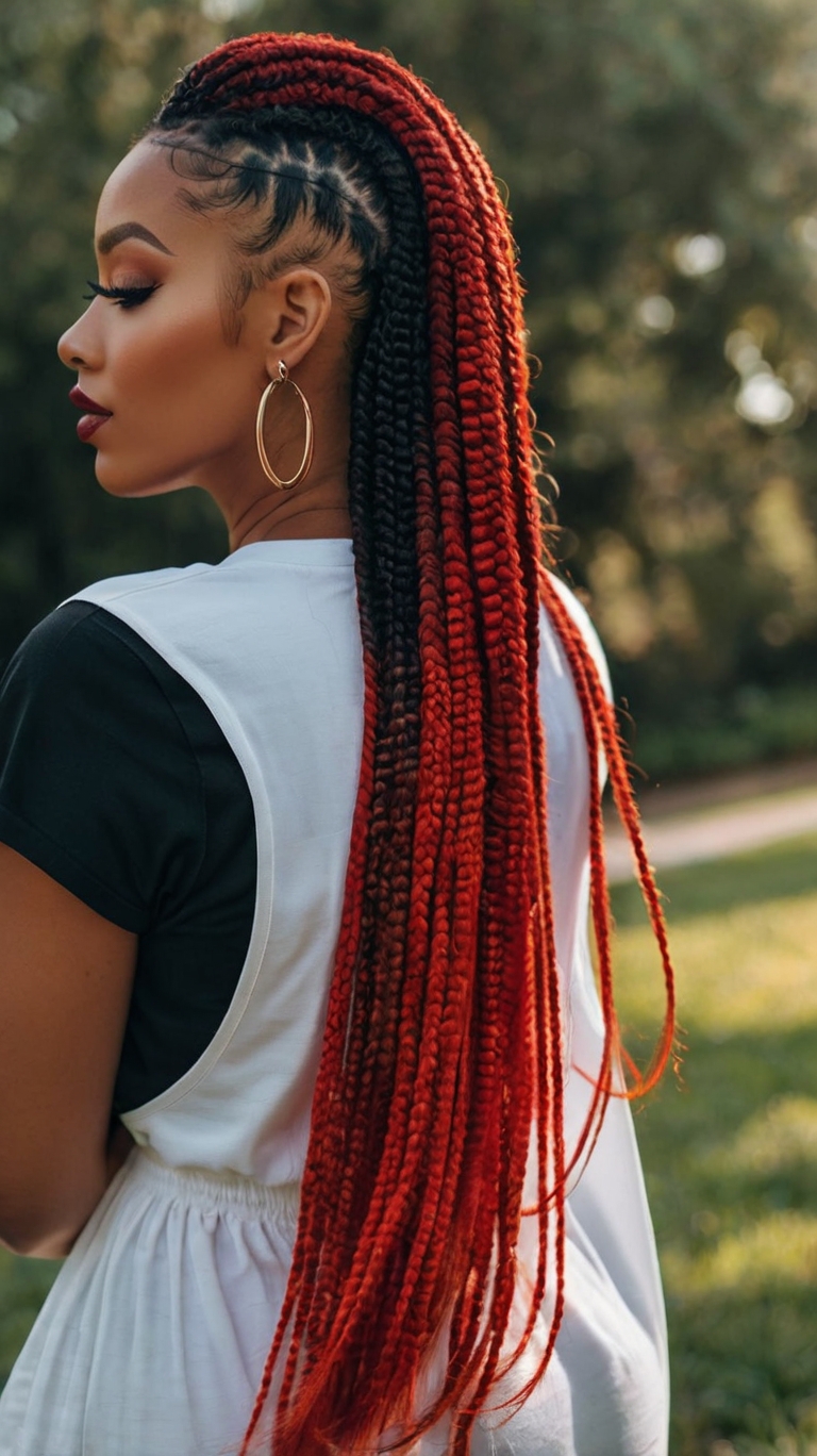 Discover the hottest red ombre knotless box braids styles on our website! Get inspired by our collection of trendy and stunning looks. Find your perfect style today!